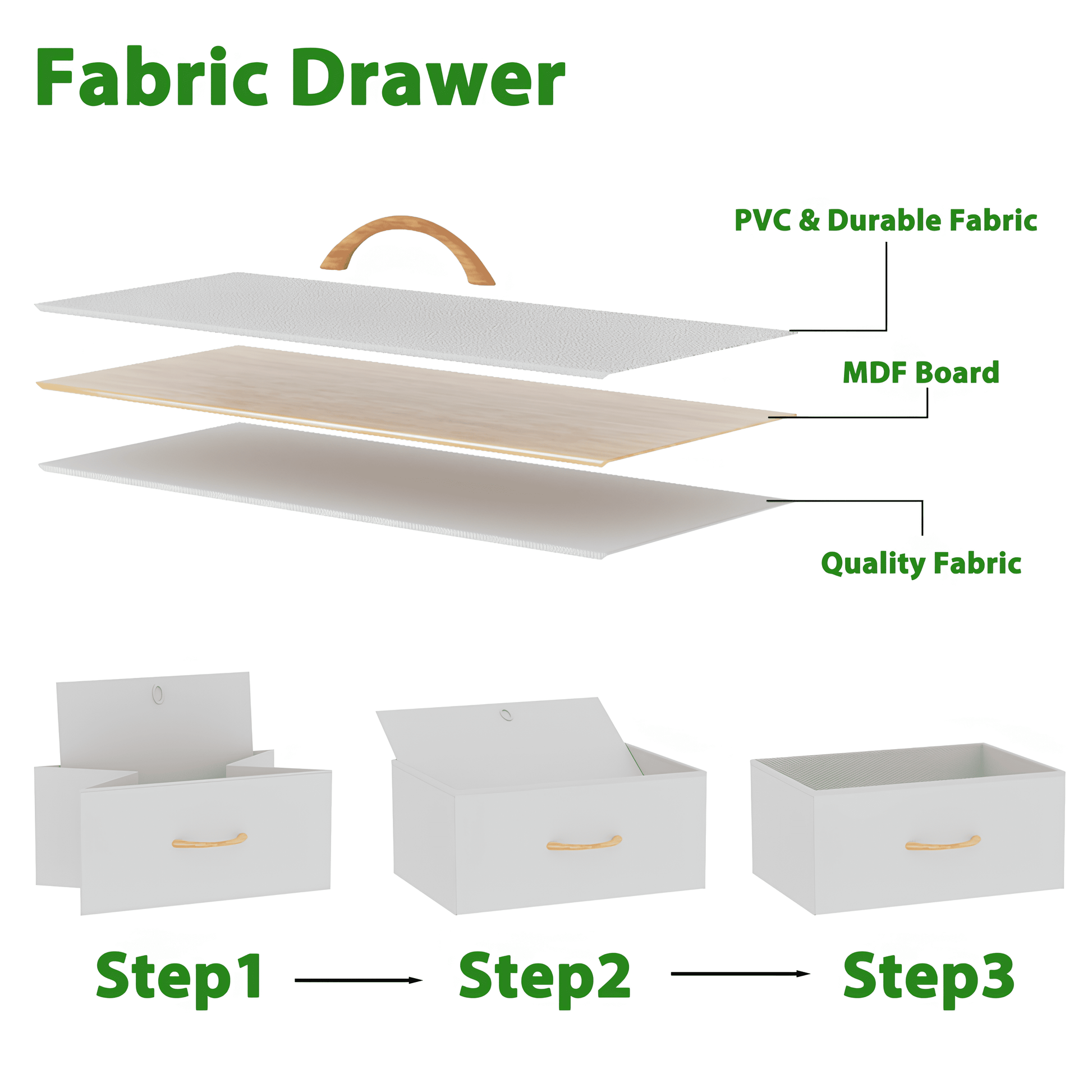This versatile dresser features a smart RGB LED with adjustable brightness and modes like Style, Music, Microphone, and Timer, perfect for setting the bedroom mood. It includes a charging station with 2 AC outlets and a 5 ft power cord to keep your devices charged. The nightstand offers ample storage with 4 fabric drawers and a top wooden shelf for personal items and decor. Made with a sturdy frame and adjustable feet, it ensures stability and safety, even on uneven floors. Its compact design fits seamlessly in any room, ideal for adults. Easy to install with clear instructions and 24/7 customer service available.