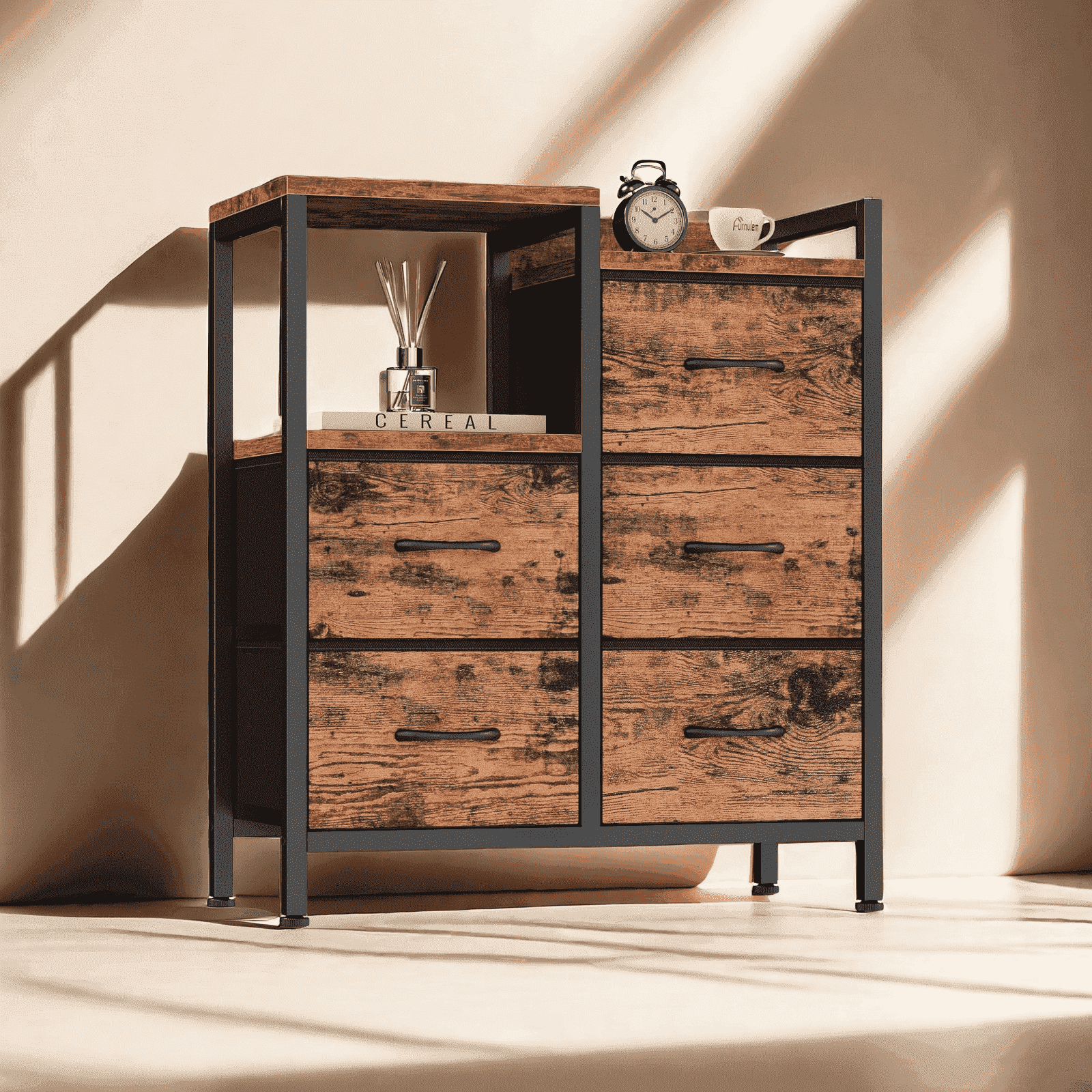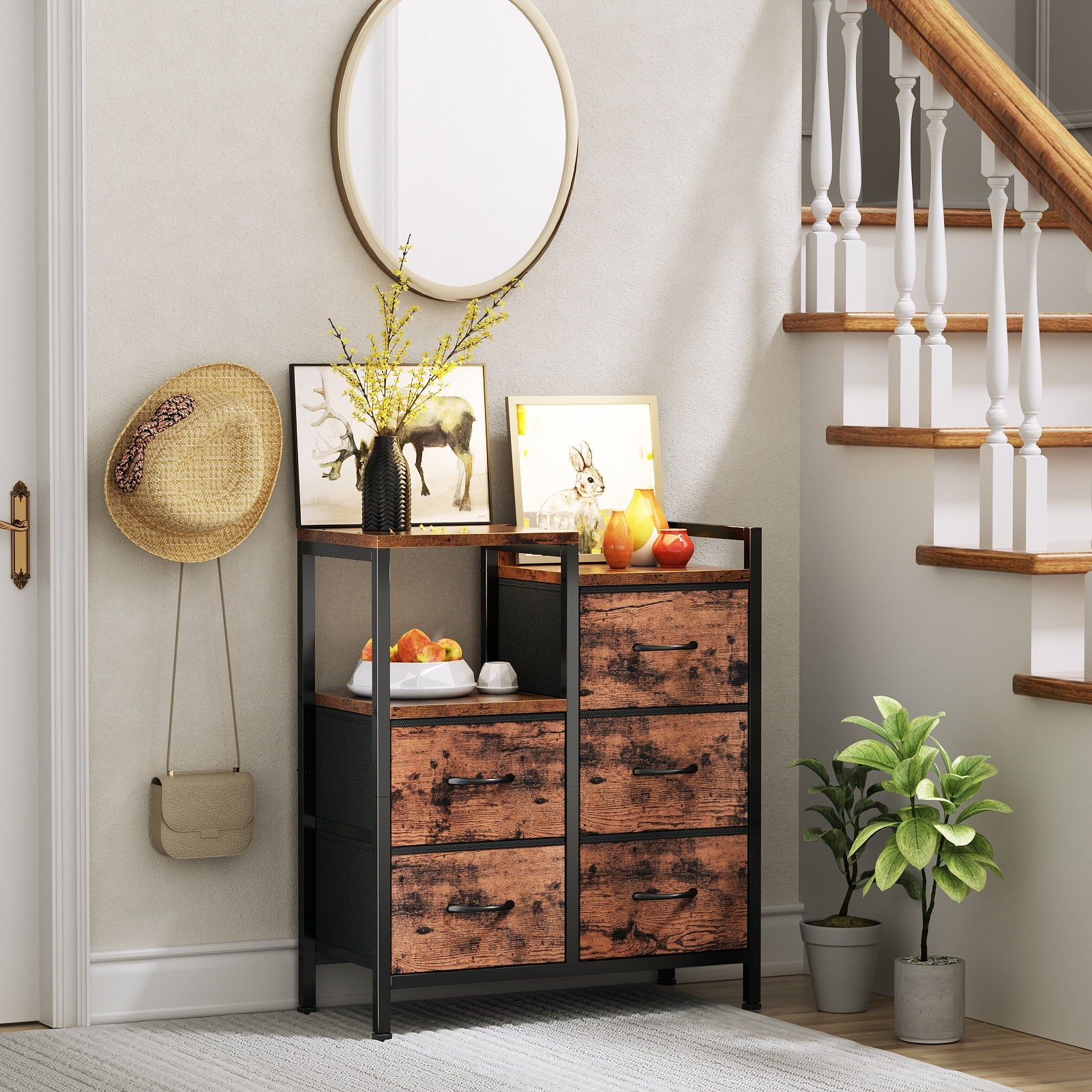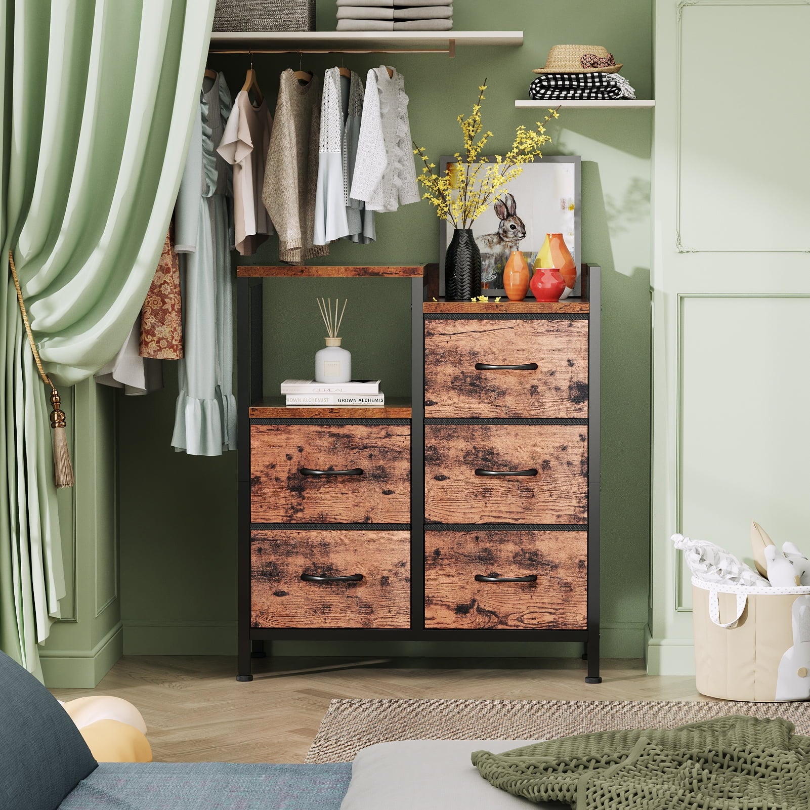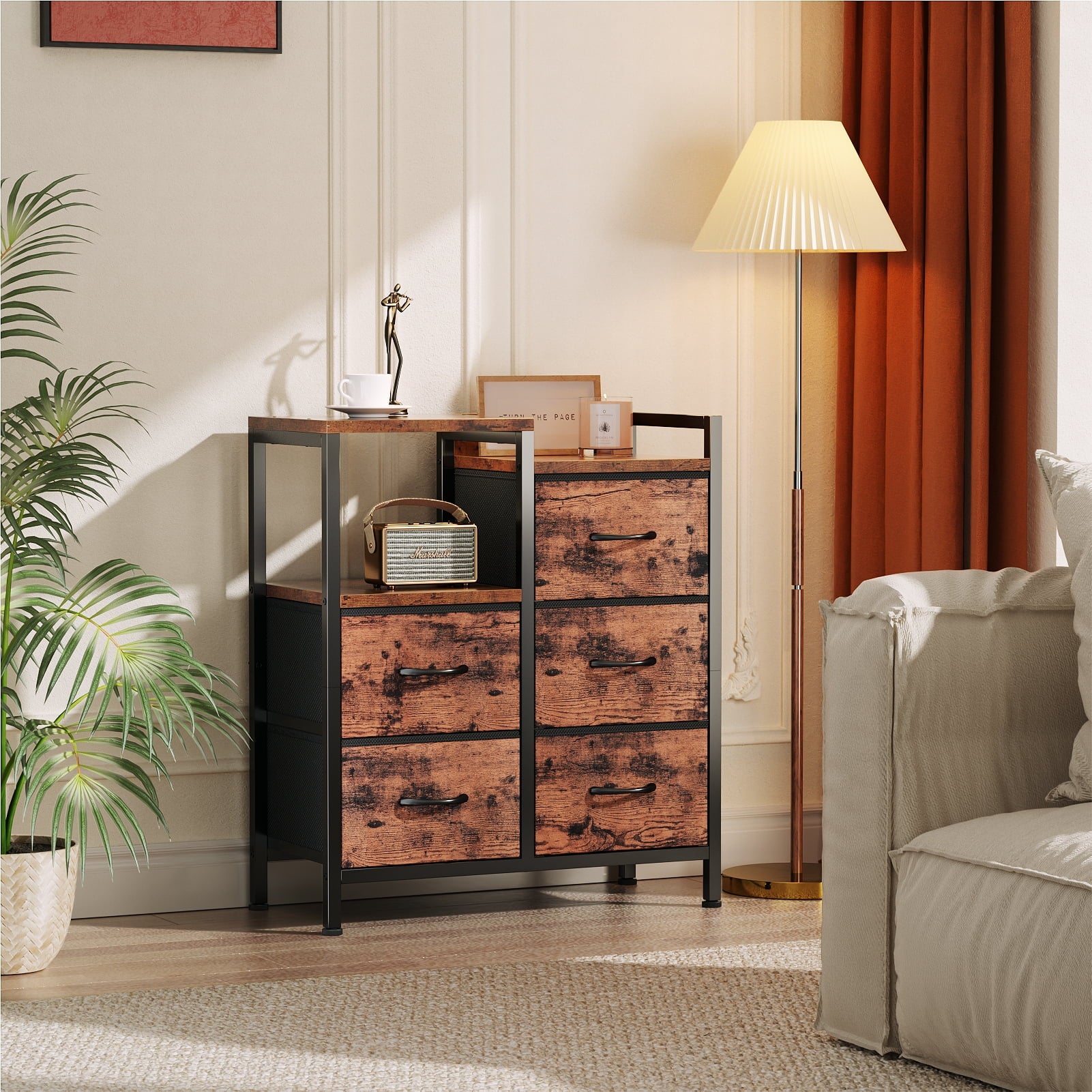 TYDIMOR 5 Drawer Fabric Dresser for Bedroom, Rustic Brown Chest for Closet & Living Room, Ideal for Adults