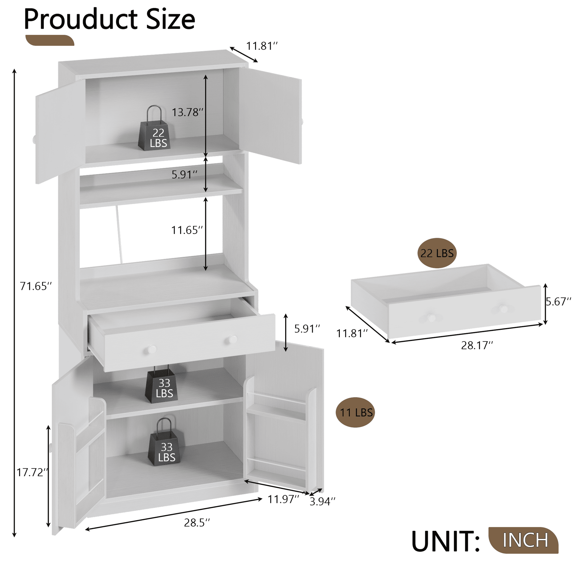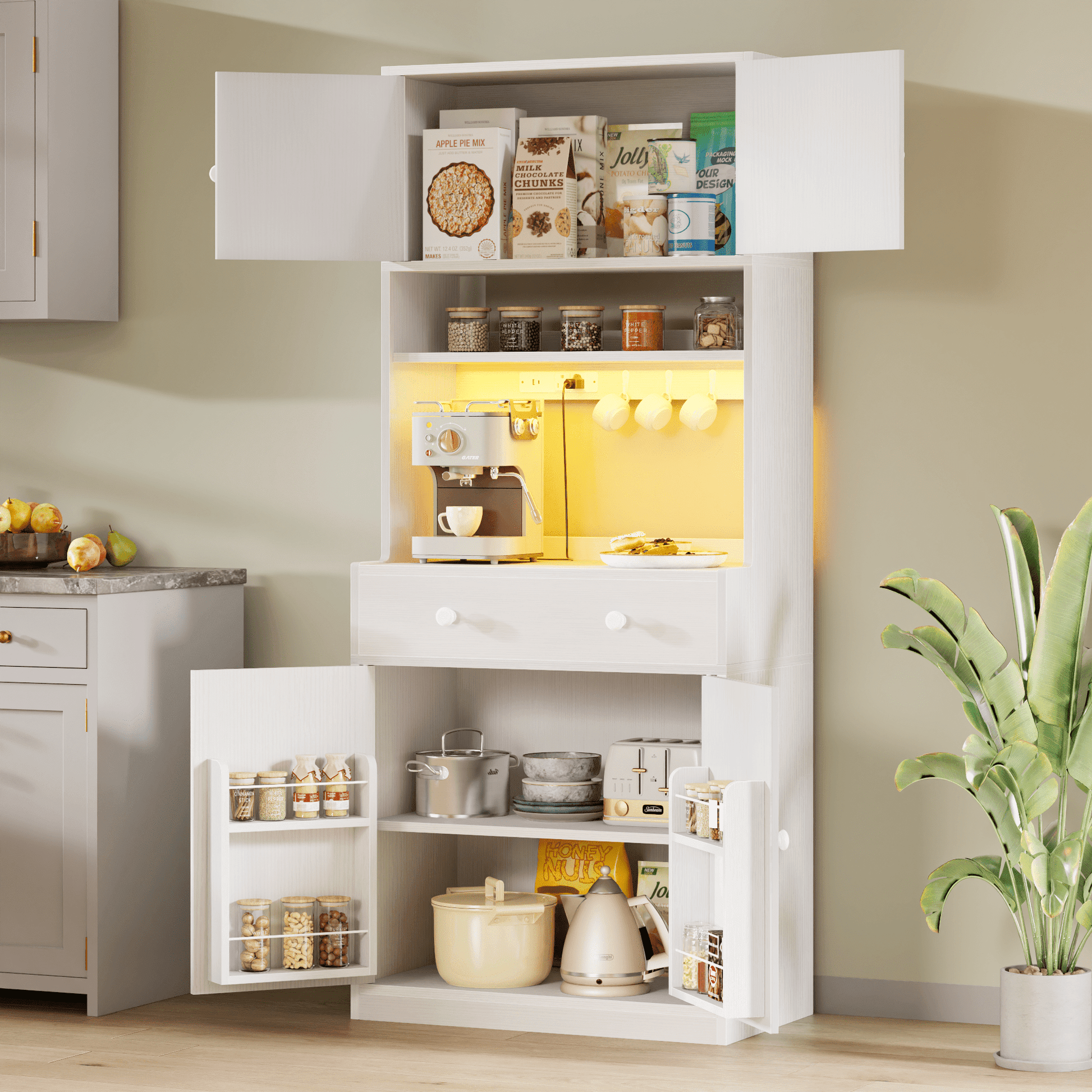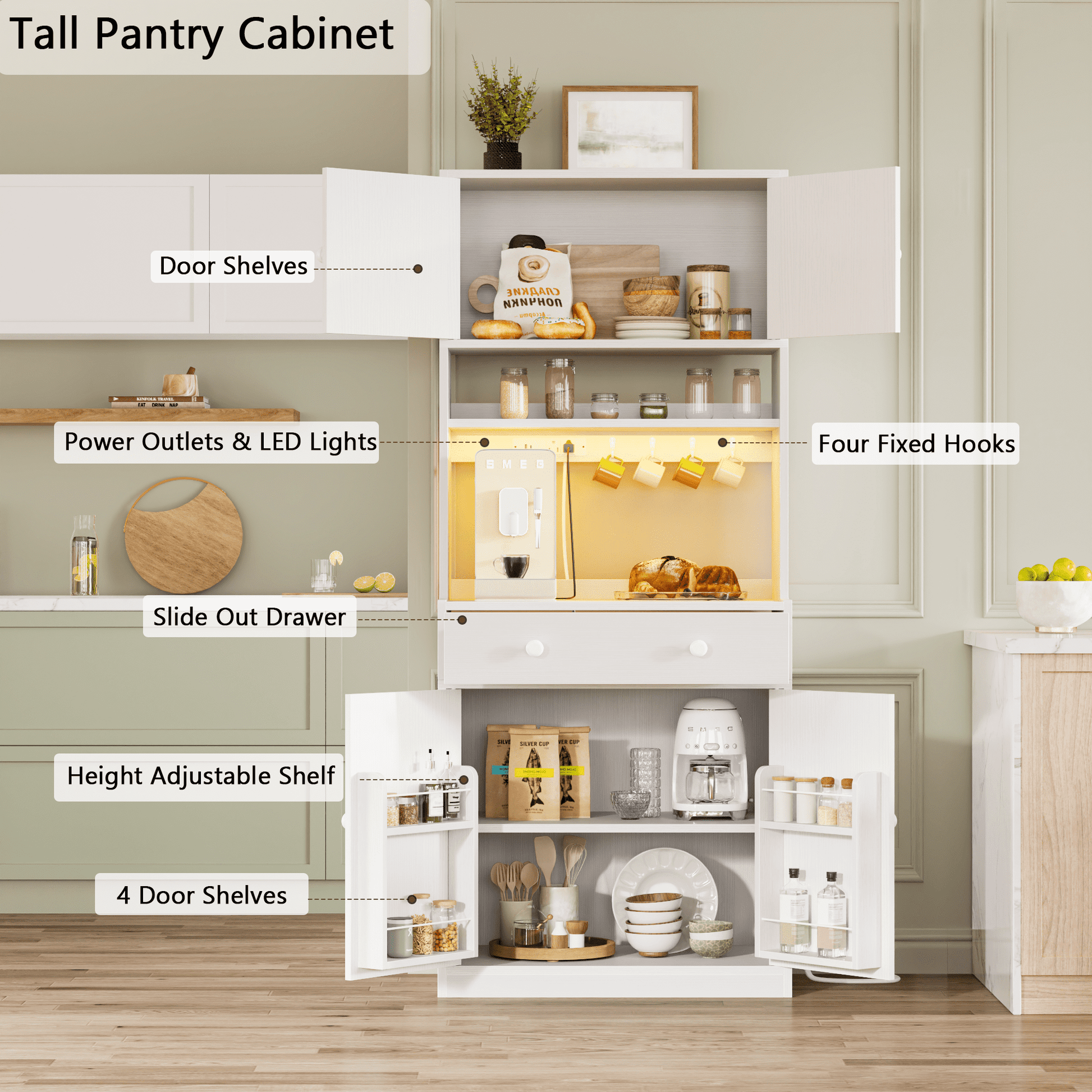 TYDIMOR 72'' Kitchen Pantry Storage Cabinet with Doors & Shelves, Wood Buffet Cabinet with Microwave Stand, Tall Hutch Cabinet for Dining Room, White