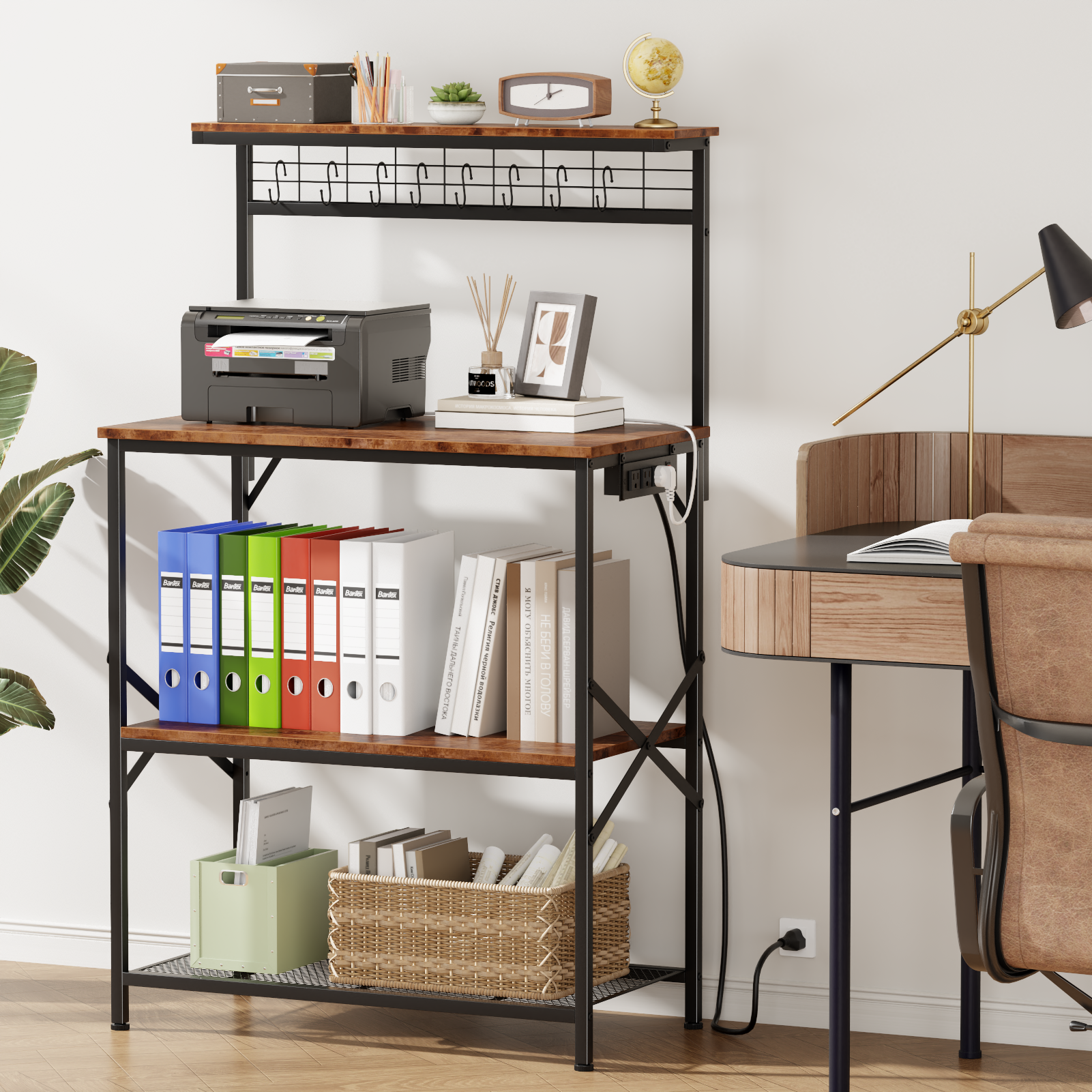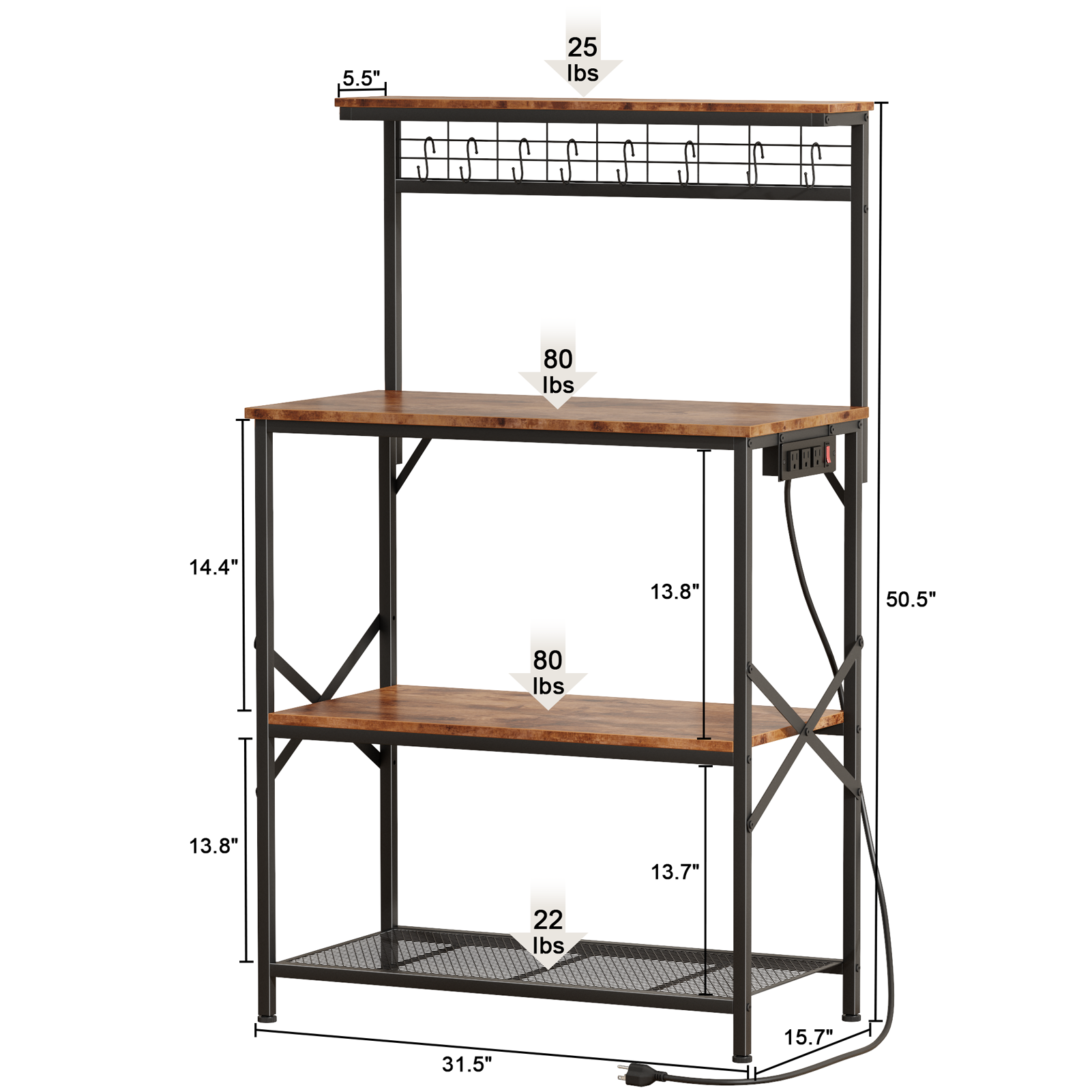 Tydimor Bakers Rack with Power Outlet, Kitchen Microwave Stand, 4-Tier Coffee Bar Table, Space-Saving Kitchen Storage Shelf, Rustic Brown
