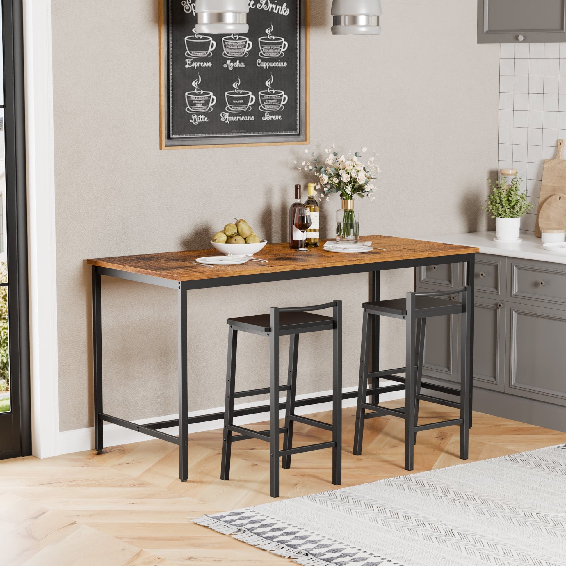 TYDIMOR Bar Stools, Set of 2 Bar Chairs, 24 Inch Saddle Stools, Kitchen Counter Stools with Footrests, Industrial Stools for Dining Room, Kitchen, Counter, Bar, Rustic Brown and Black