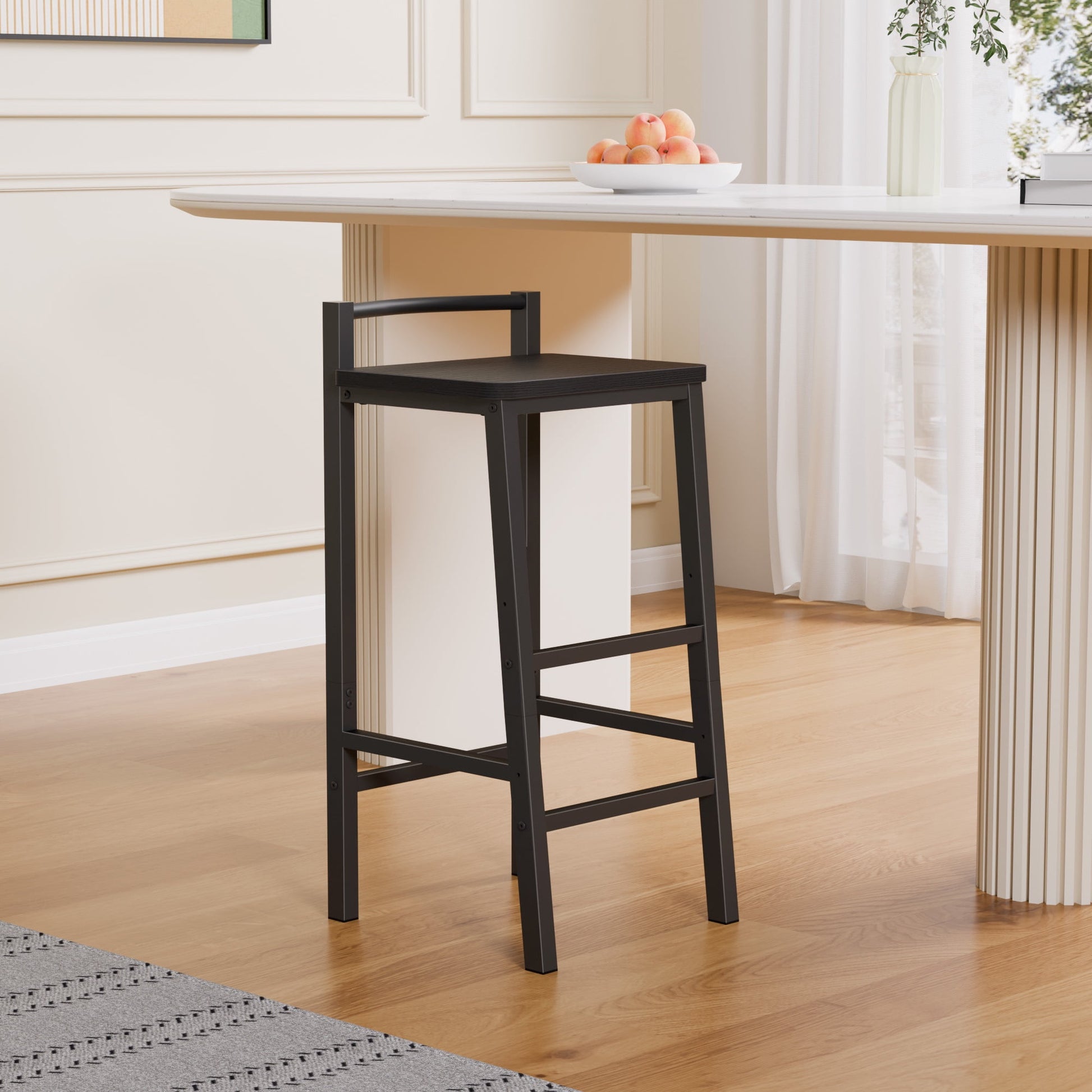 This ergonomic saddle stool features a modern design with a curved panel to relieve fatigue and provide comfort during long sitting periods. Made from high-quality particleboard and iron, it ensures durability and stability. The stool includes footrests at two heights for added comfort and support, accommodating users up to 265 lbs. It's versatile for use in dining rooms, kitchens, bars, or study areas, enhancing focus and comfort. Easy to assemble with labeled parts and clear instructions, it offers a fun DIY experience.