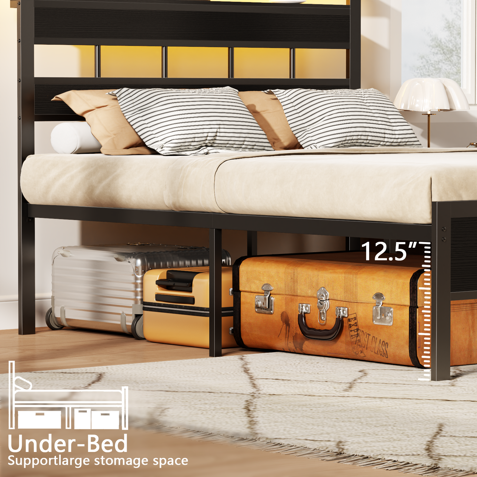 Tydimor Bed Frames Full No Sound with Storage Underbed & Headboard, Cama Full Size Bed Frame with Lights, Niose Free
