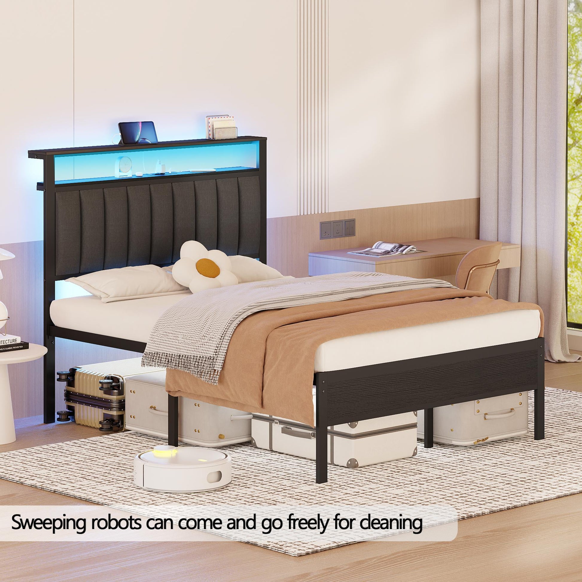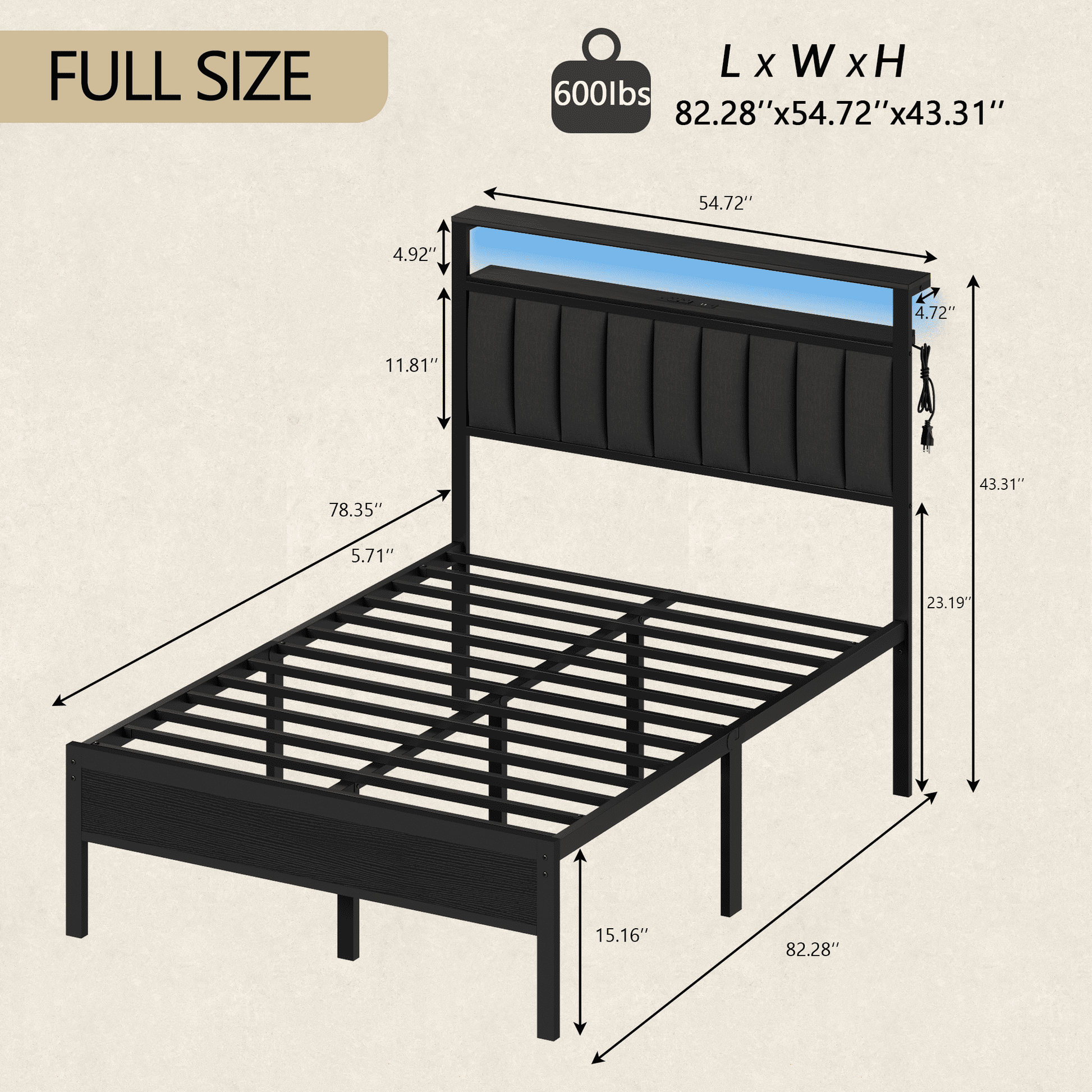 Tydimor Electric Full Size Platforrm Bed Frames with Charging Station, LED Standard Storage Space Bed for Bedroom, No Box Spring Needed