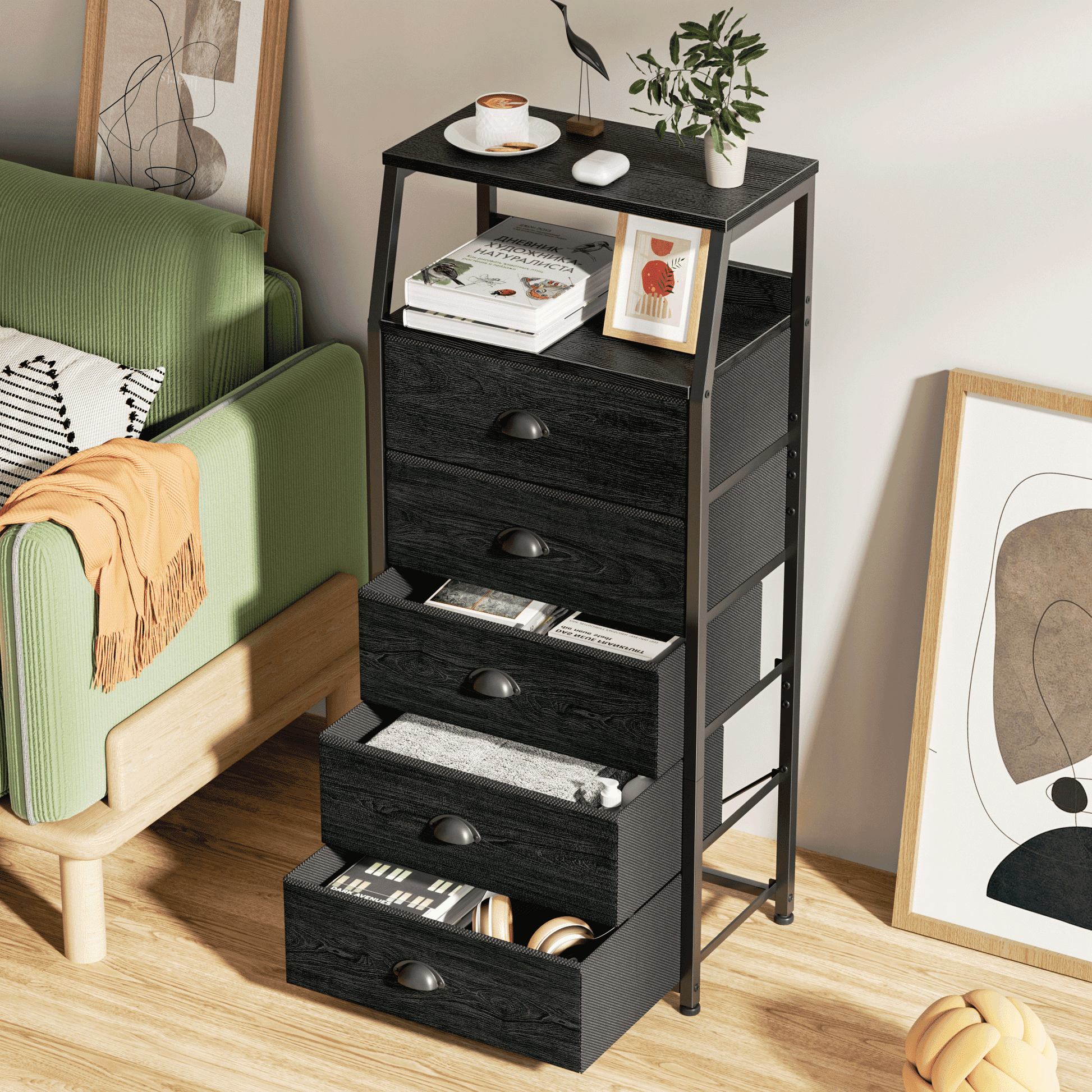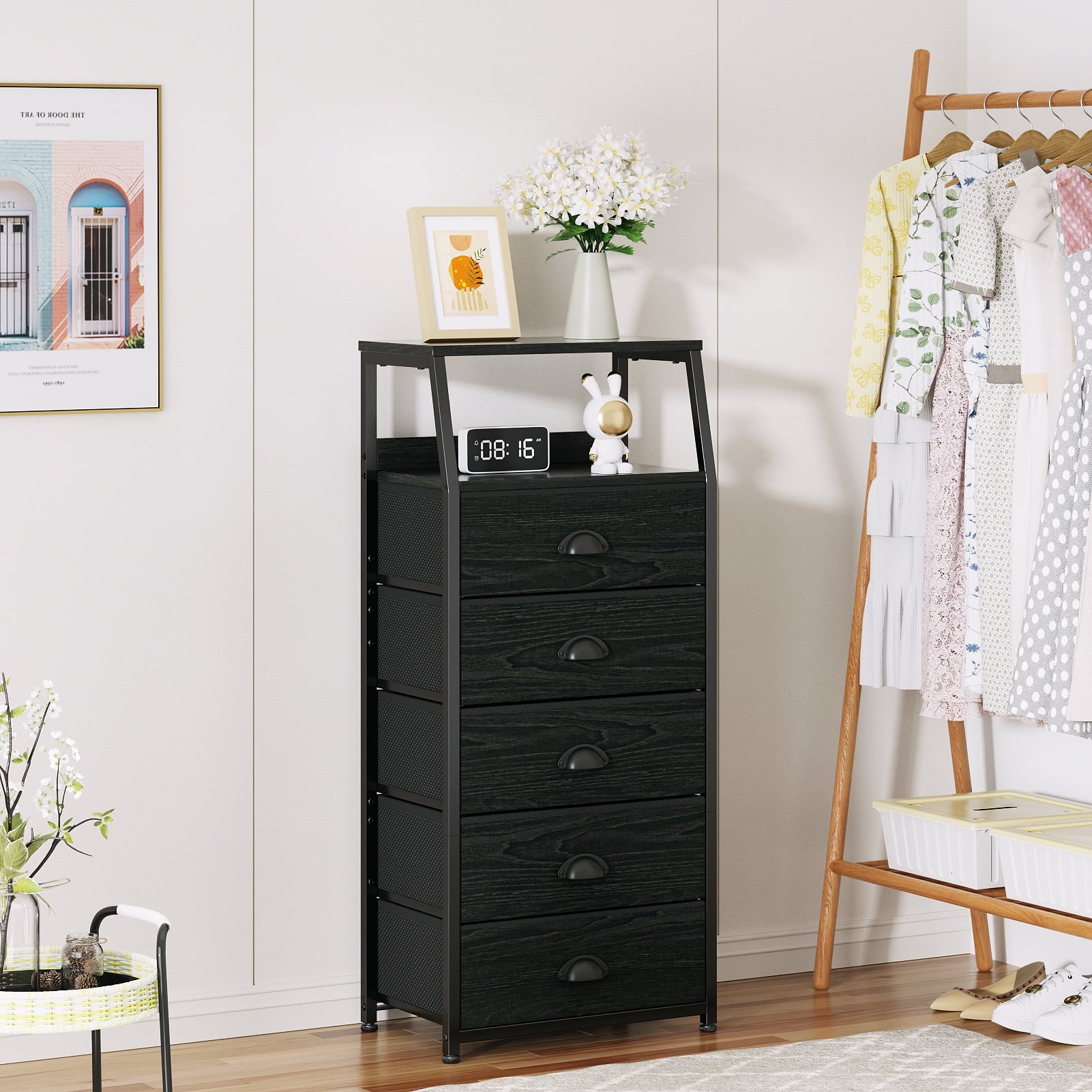 TYDIMOR Fabric Dresser for Bedroom, 5 Drawer Chest of Drawers, Black, Ideal for Adults