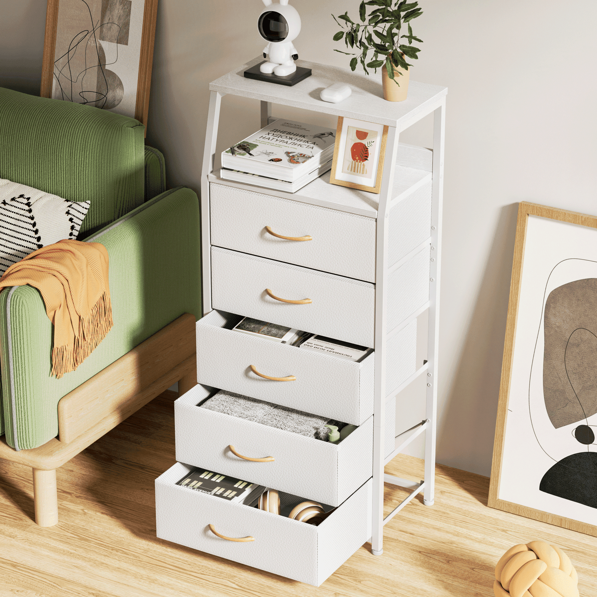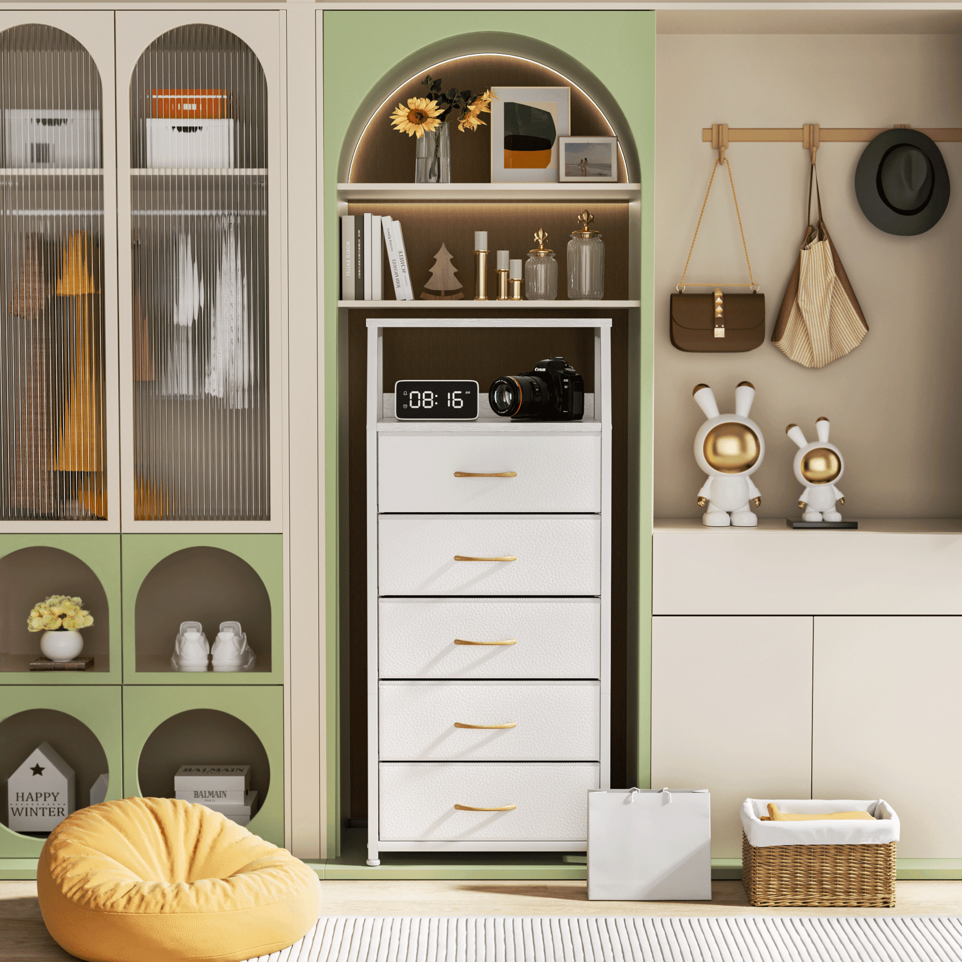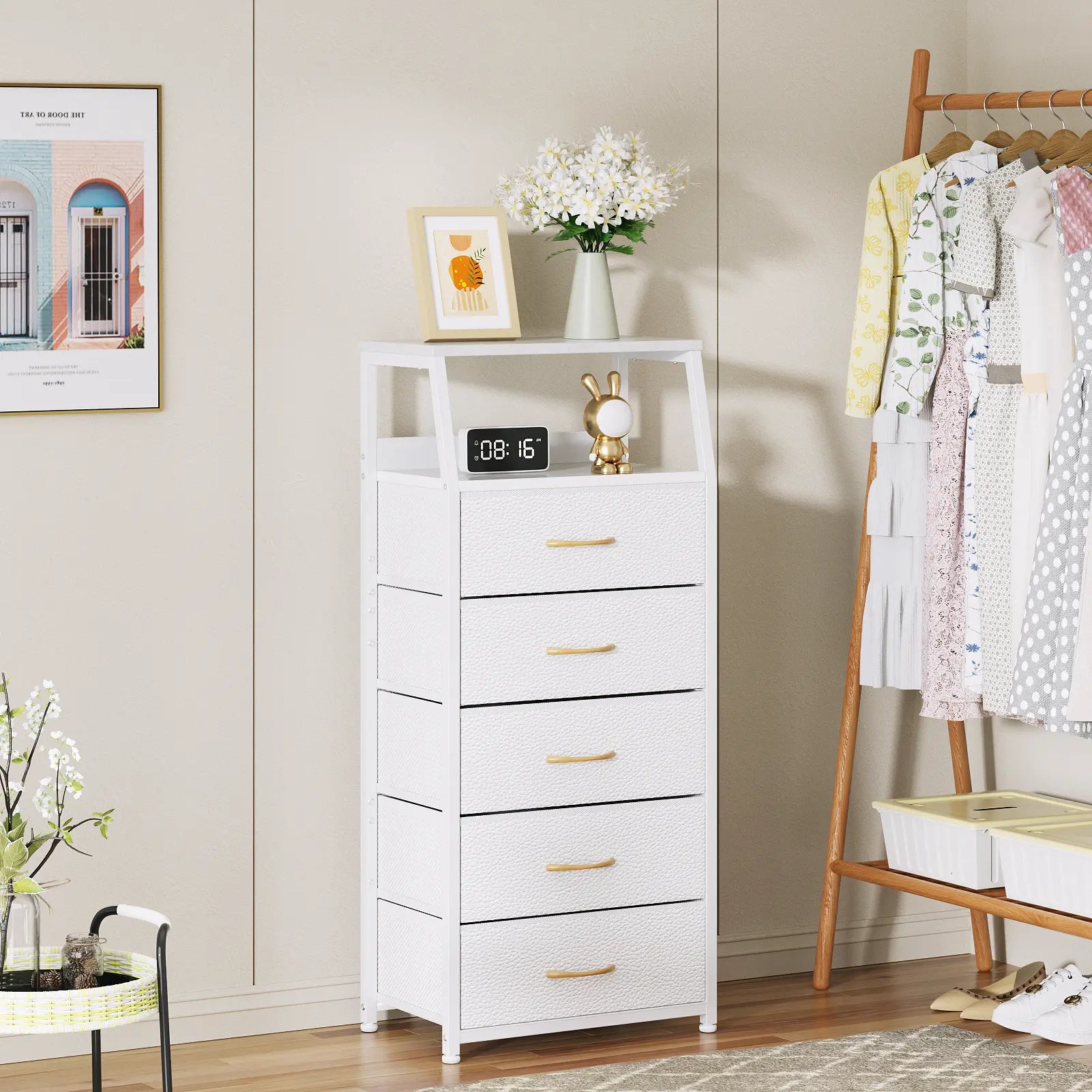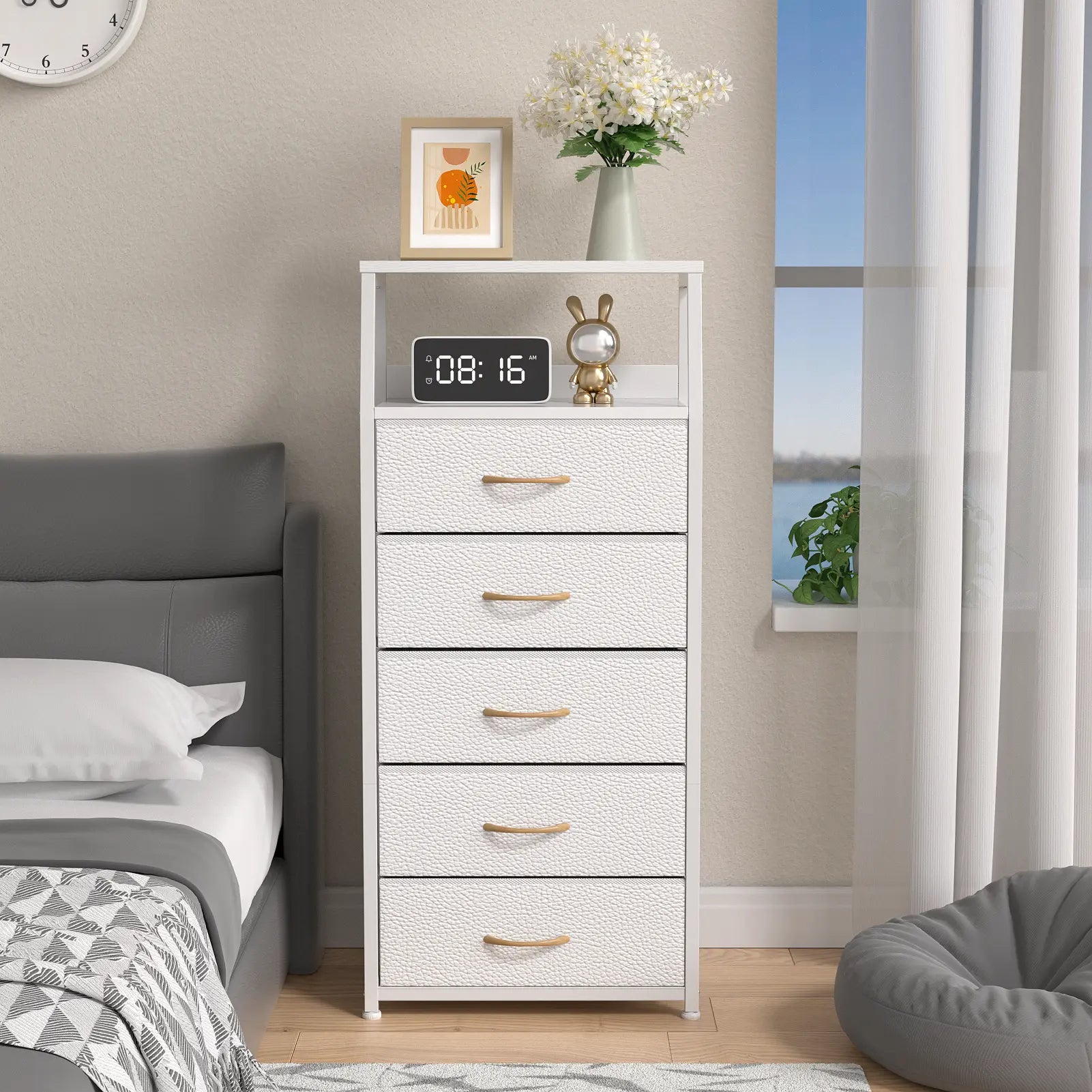 TYDIMOR Fabric Dresser for Bedroom, 5 Drawer Chest of Drawers, White, Ideal for Adults