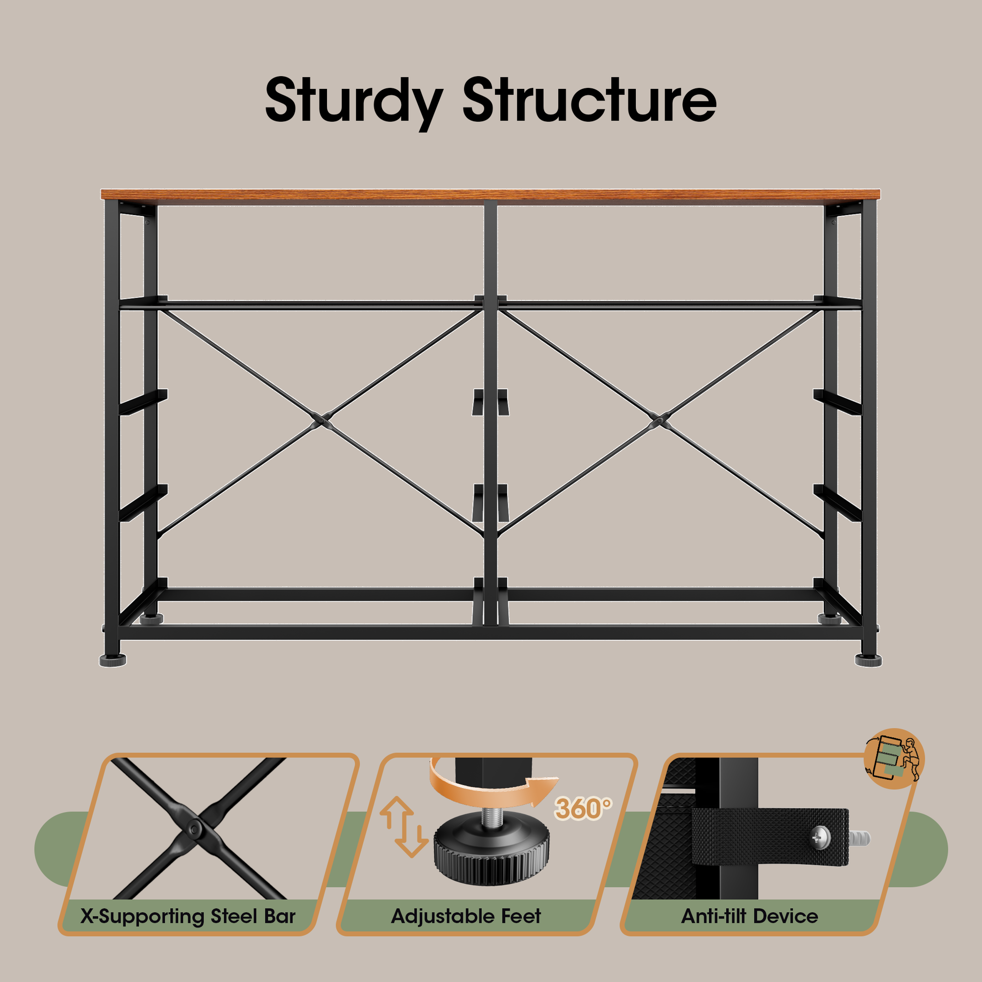 Sturdy & Safe Construction: A thickened metal frame and solid wood top ensure stability, and it comes with an anti-tip kit. The durable drawer materials and overall design balance load capacity with family safety