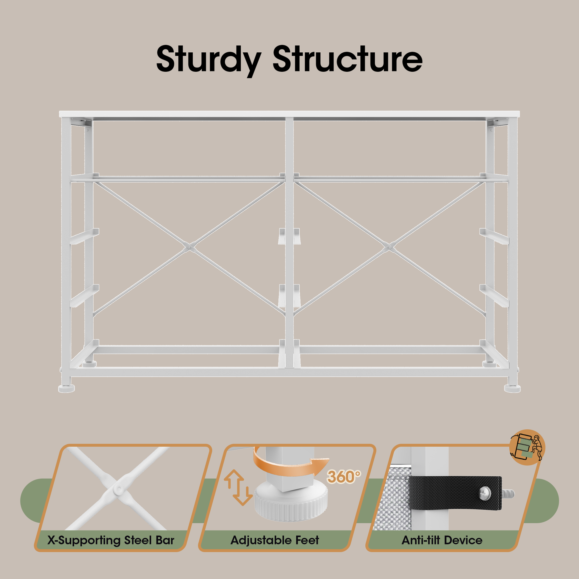 Sturdy & Safe Construction: A thickened metal frame and solid wood top ensure stability, and it comes with an anti-tip kit. The durable drawer materials and overall design balance load capacity with family safety