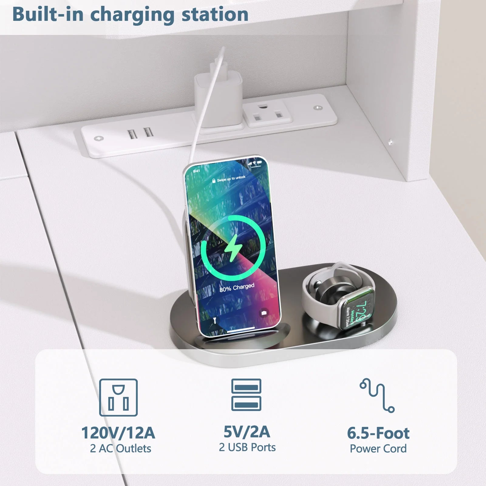 - Makeup Table with Charging Station: Includes 2 USB ports and 2 power outlets for all your beauty devices.