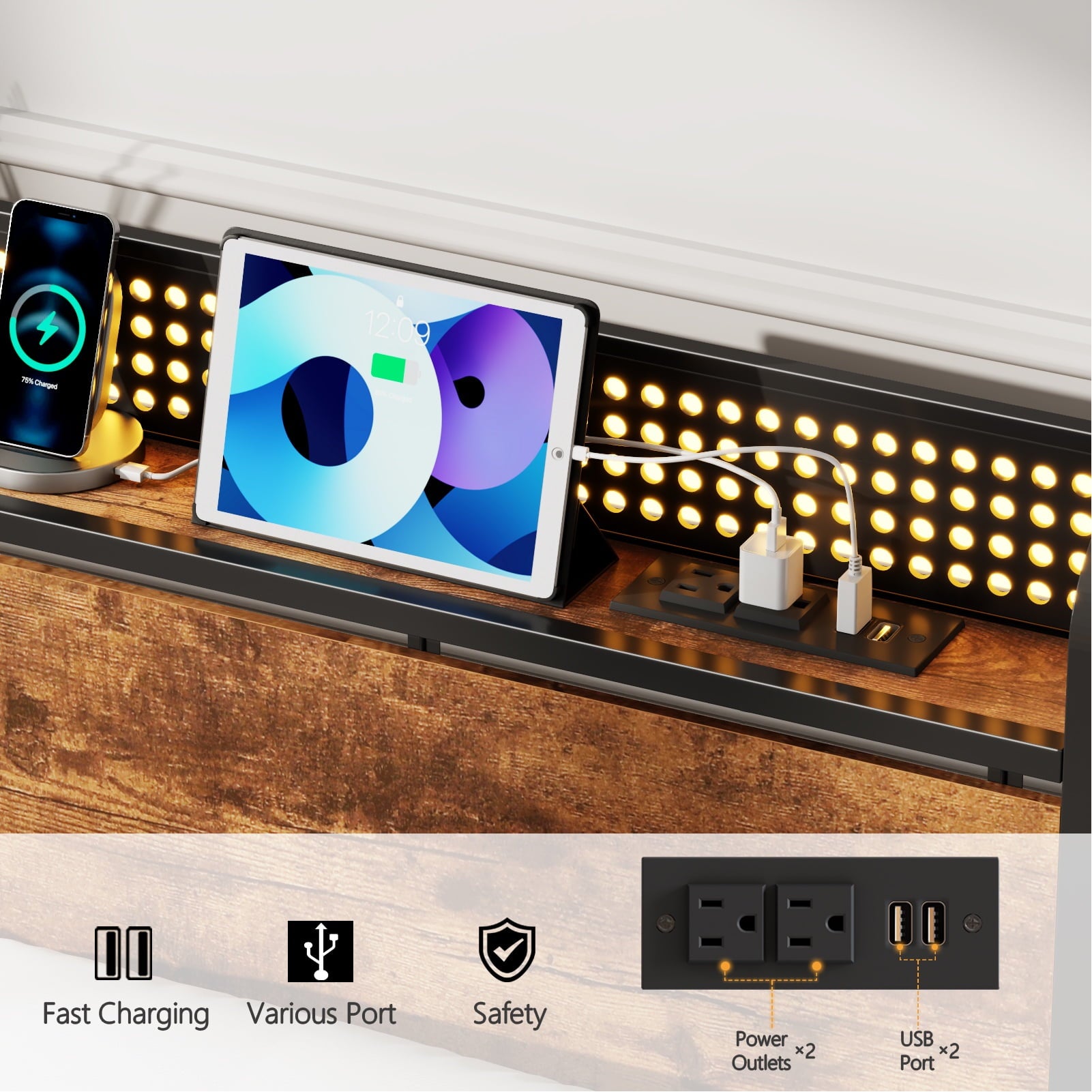 Tydimor Full Bed Frame with 2 Drawers & Storage Headboard, Platform Metal Bed with Charging Station, No Box Spring Needed