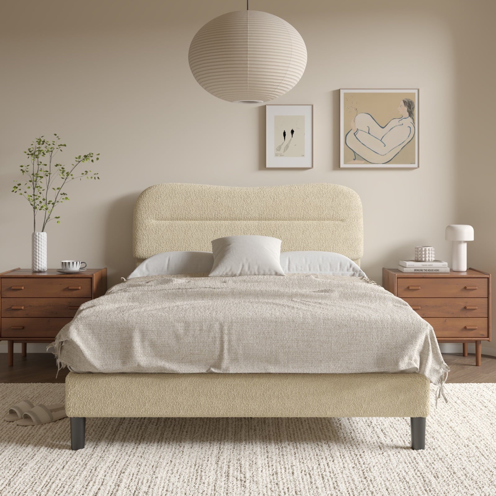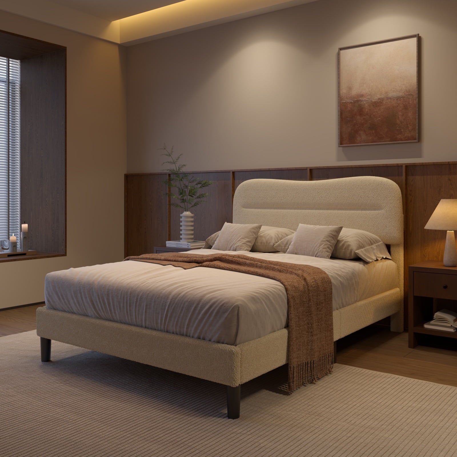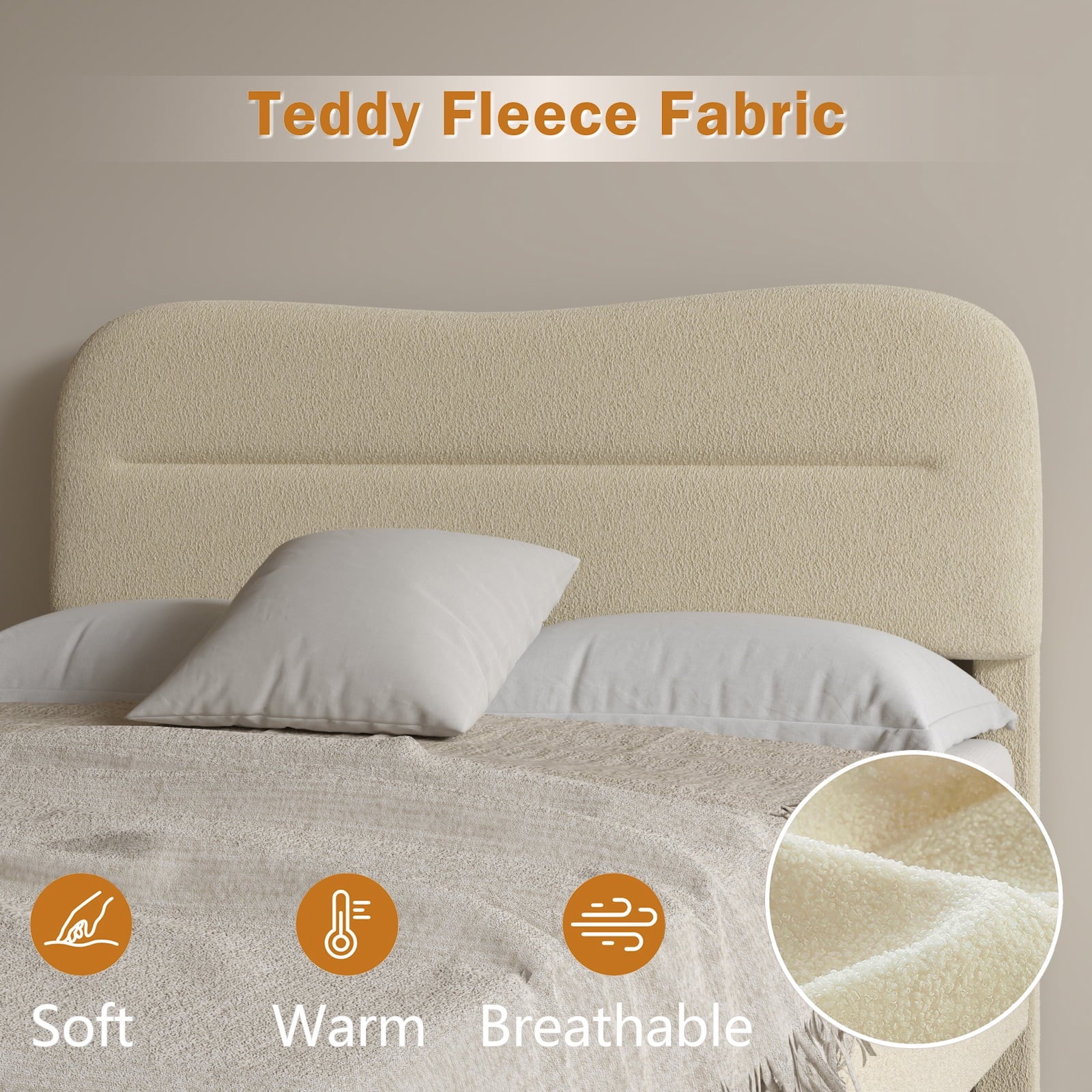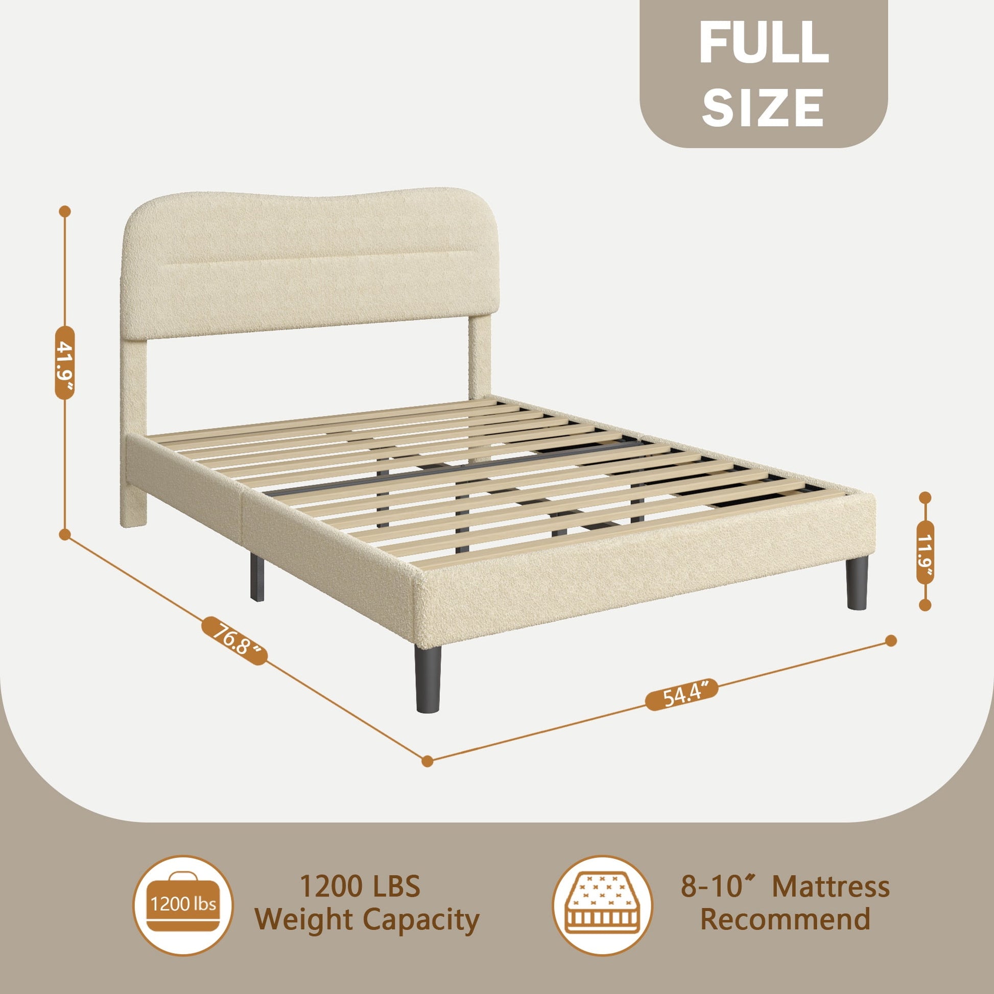 Tydimor Full Bed Frame with Teddy Velvet Soft Curved Headboard, Platform Bed with Wooden Slats Support, Easy Assembly, Noise-Free, Beige