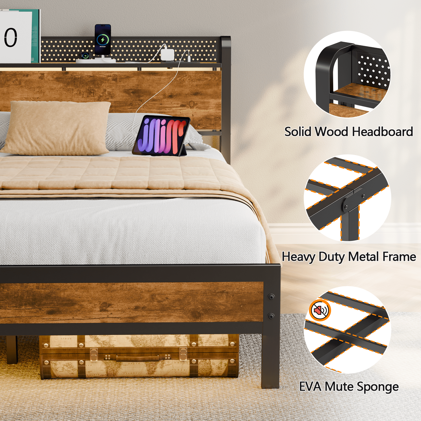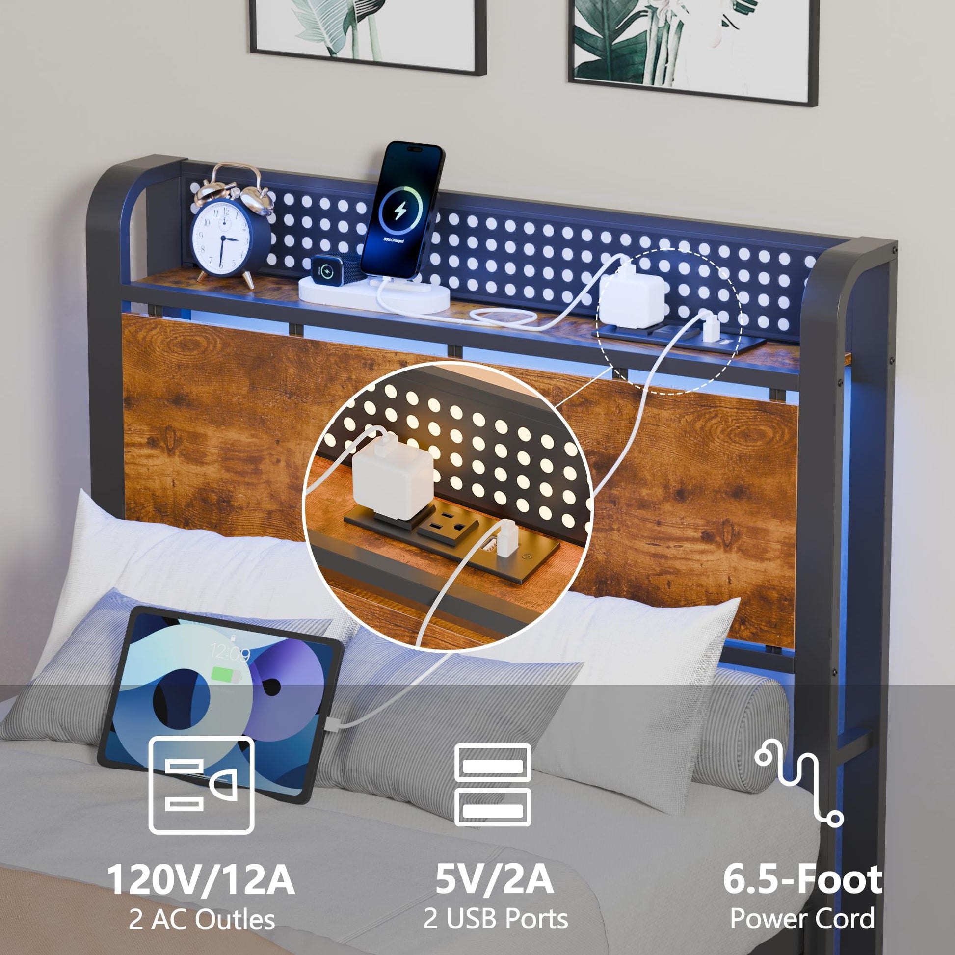 Tydimor Full RGB LED Strip Platforrm Bed Frames with Headboard Metal, Storage Shelves & Underbed, Niose Free, No Box Spring Needed