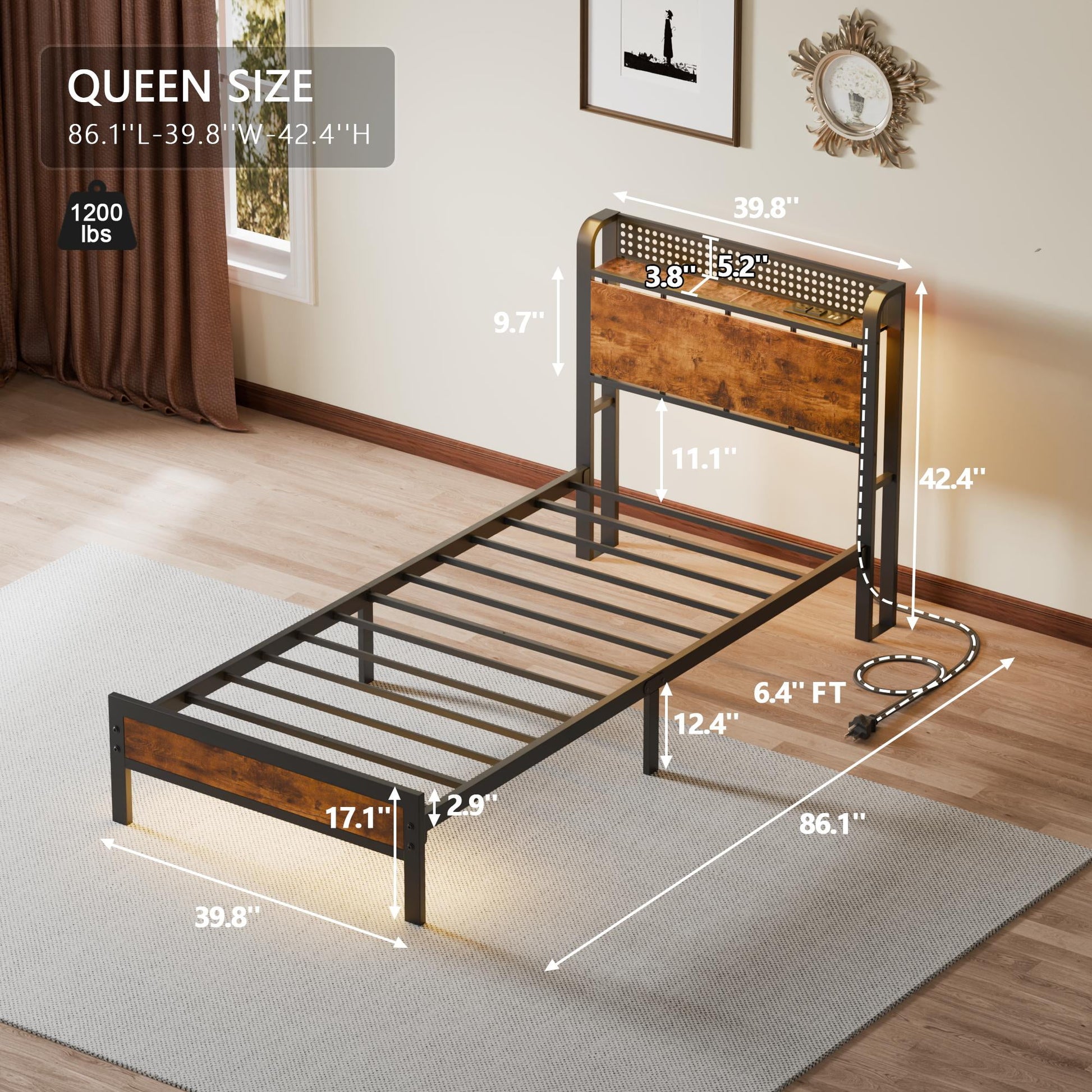 features a convenient charging socket design, allowing easy access to items. Additionally, the bed offers ample under-bed storage space of 12.5 inches, providing extra room for belongings. Soft LED lights are also incorporated into the design, offering