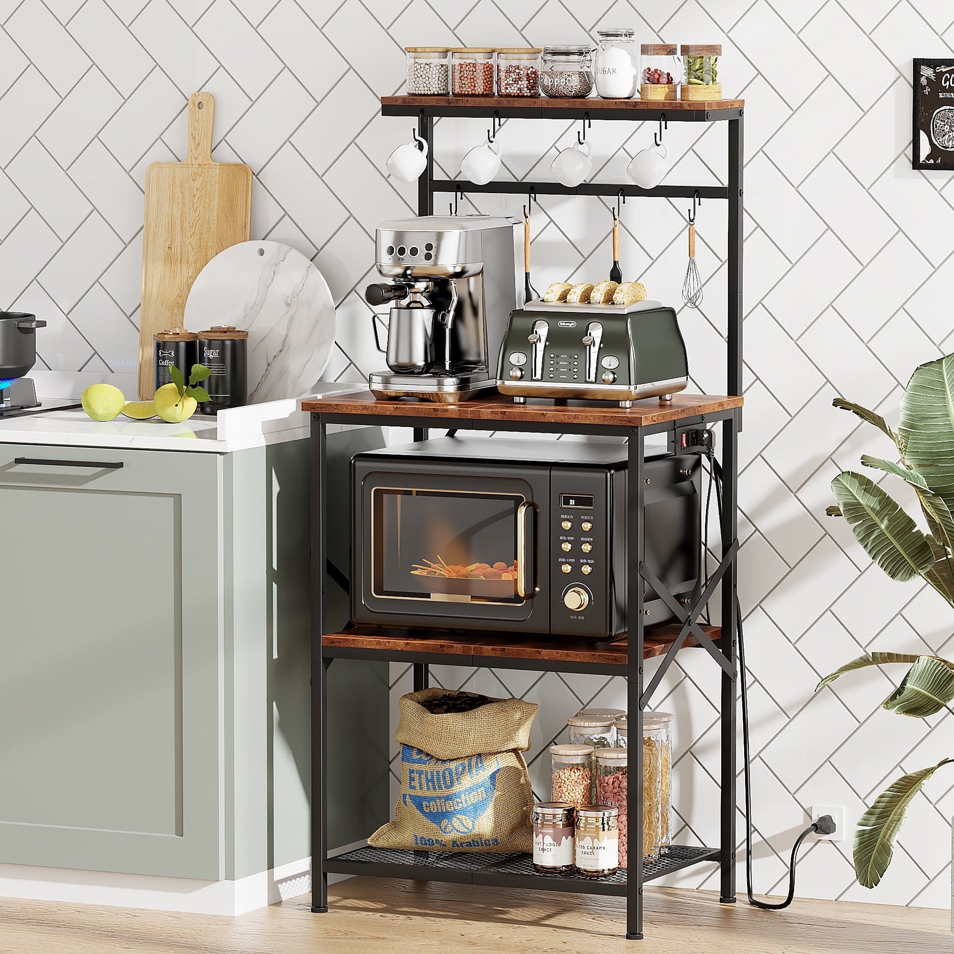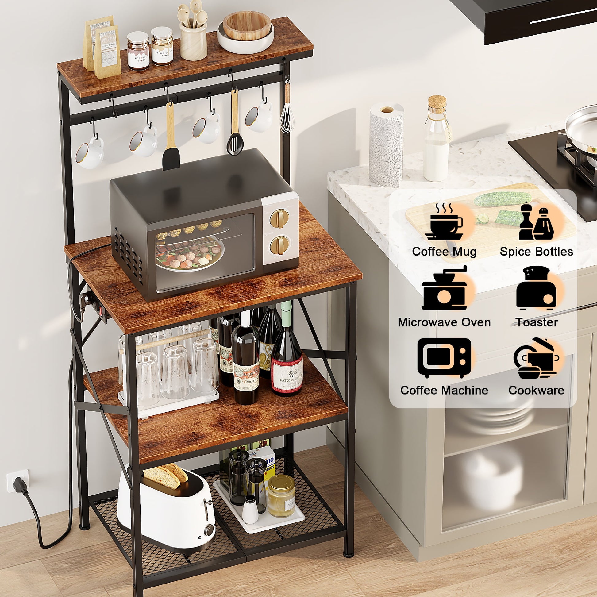 TYDIMOR Kitchen Bakers Rack with Outlets, Coffee Bar Table 4 Tiers Microwave Stand, Brown