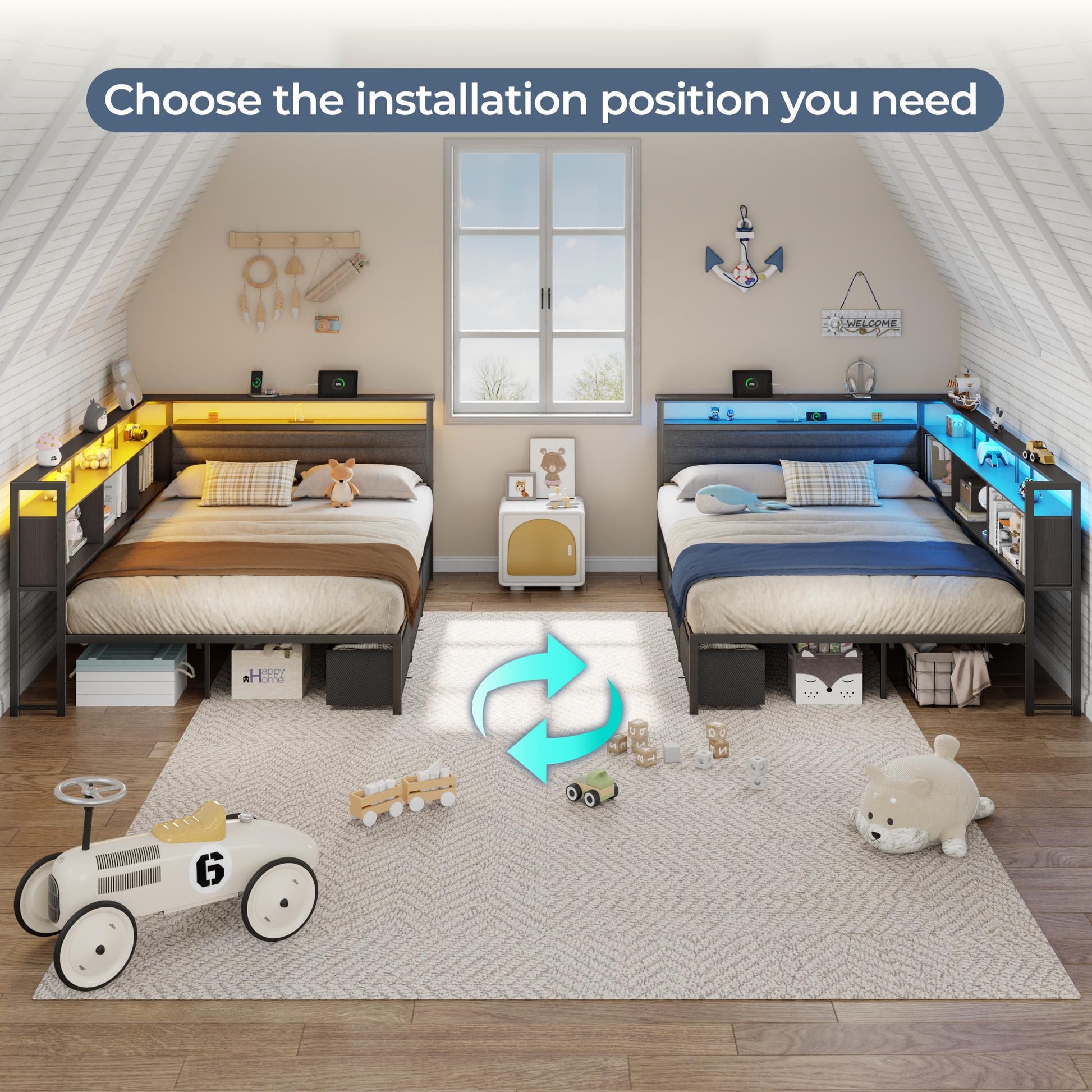 This L-shaped corner bed frame is a space-saving, functional game-changer¡ªperfect for teen bedrooms, small apartments, or cozy homes! It fits snugly into any layout, offering sleeping/lounging versatility plus ample storage (3 under-bed drawers, 3 open cubbies, double-layer shelf) to stow essentials and keep small spaces tidy. It also boasts a headboard with an adhesive LED light strip (vibe-boosting for bedtime) and integrated power (1 USB, 2 AC outlets, 1 Type-C) for convenient in-bed device charging¡ªno mid-use trips.