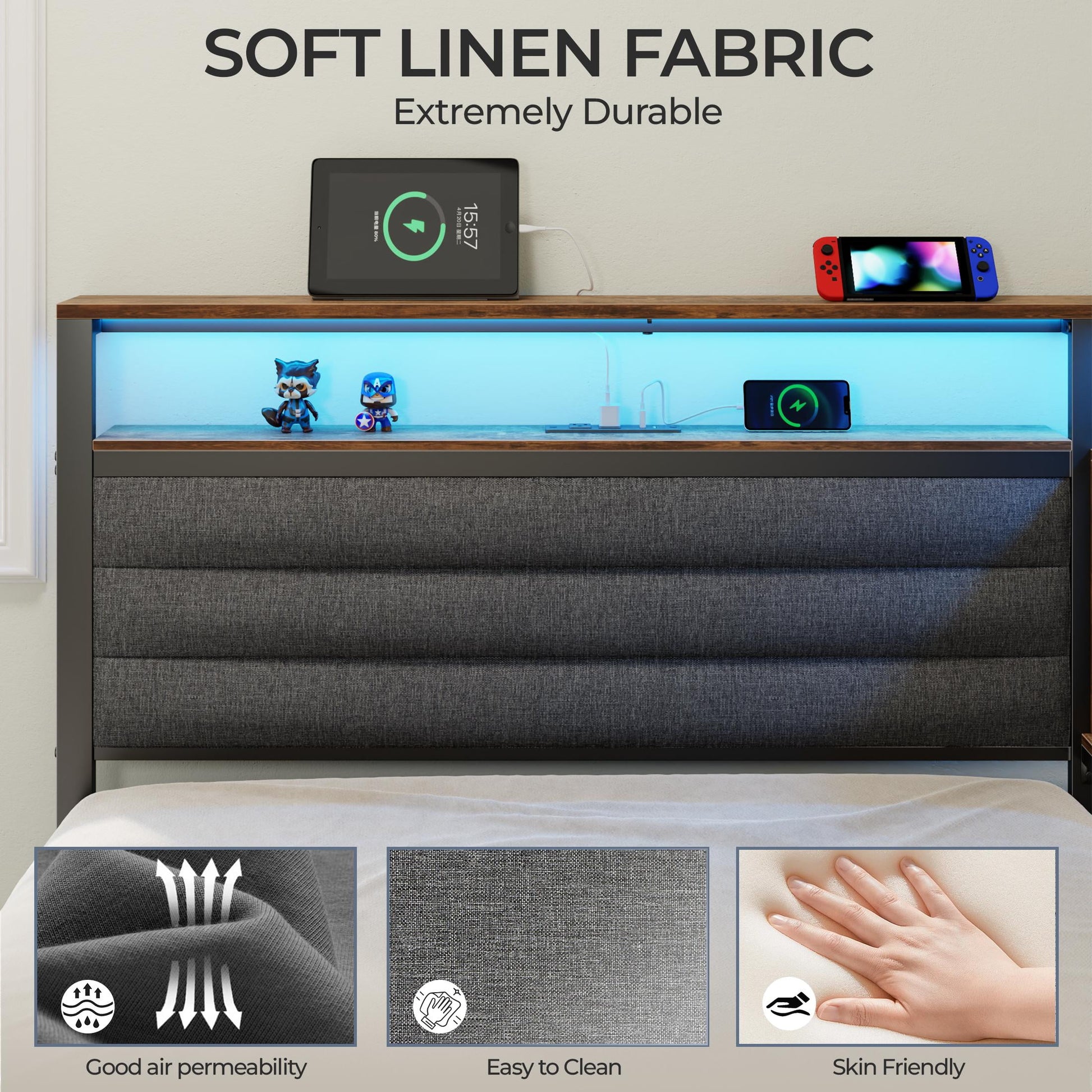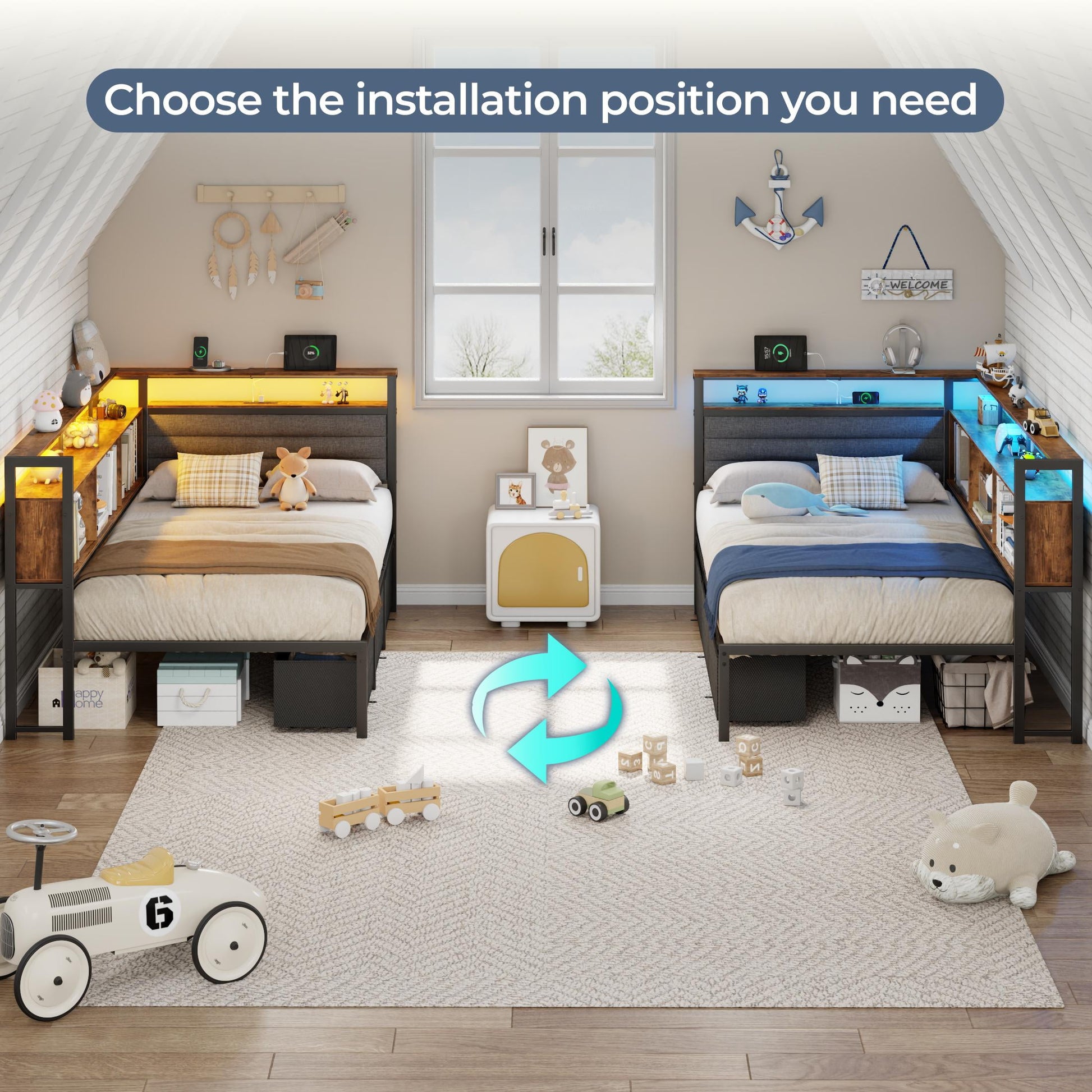 This L-shaped corner bed frame is a space-saving, functional game-changer¡ªperfect for teen bedrooms, small apartments, or cozy homes! It fits snugly into any layout, offering sleeping/lounging versatility plus ample storage (3 under-bed drawers, 3 open cubbies, double-layer shelf) to stow essentials and keep small spaces tidy. It also boasts a headboard with an adhesive LED light strip (vibe-boosting for bedtime) and integrated power (1 USB, 2 AC outlets, 1 Type-C) for convenient in-bed device charging¡ªno mid-use trips.