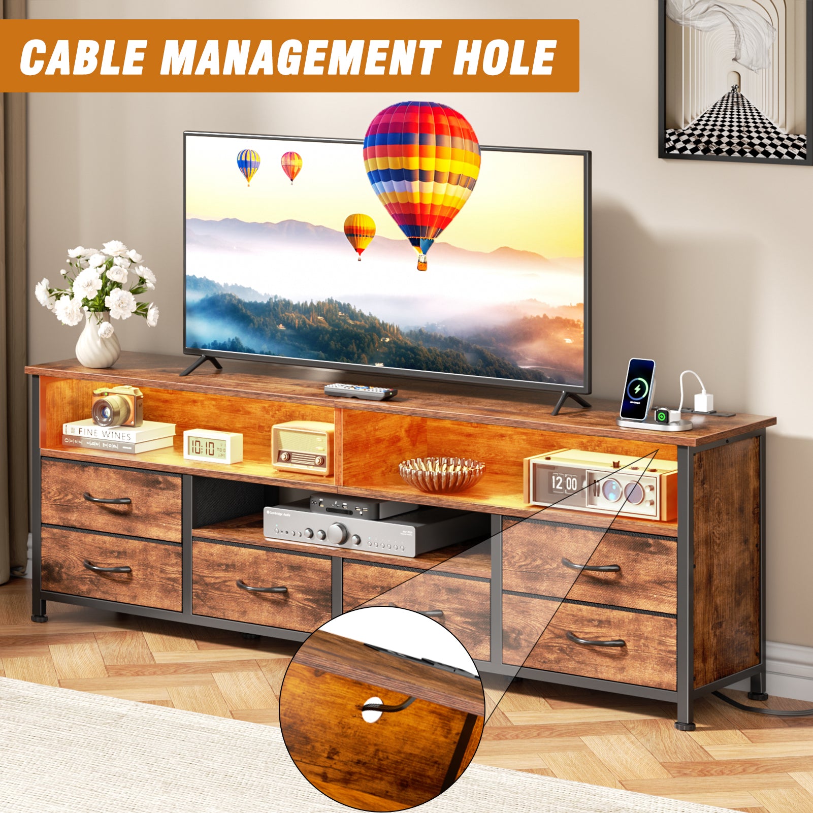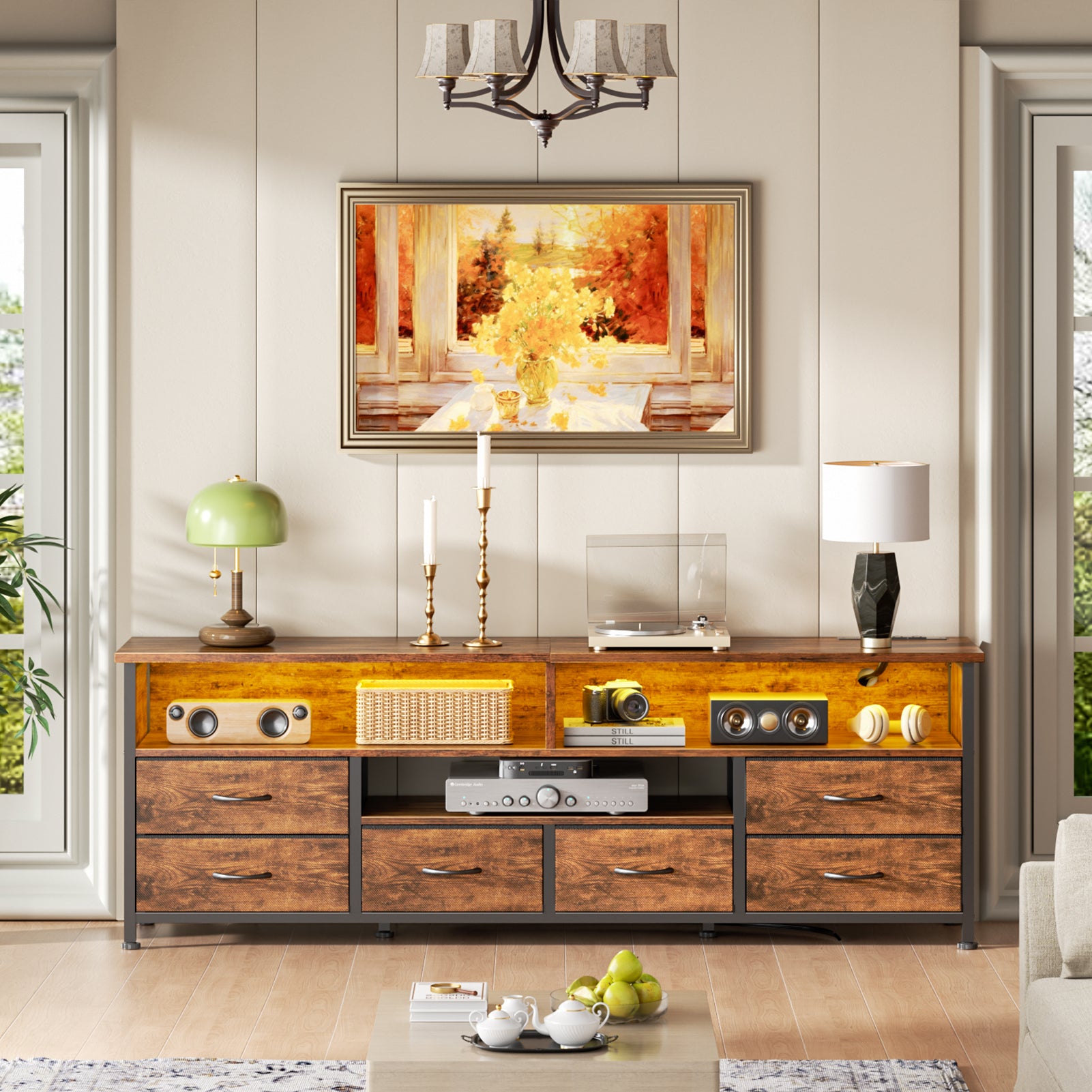 Tydimor Modern TV Stand for TVs up to 65", Media Console with 6 Drawers for Living Room, Entertainment Center with LED lights & Outlets, Rustic