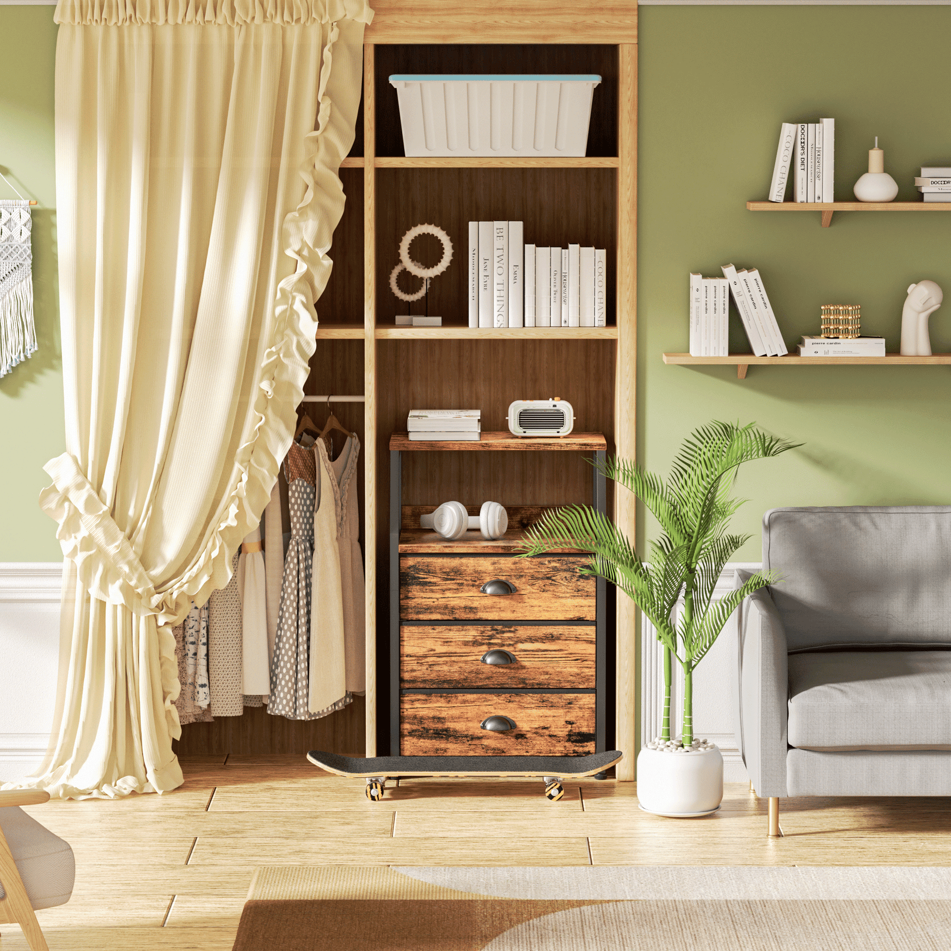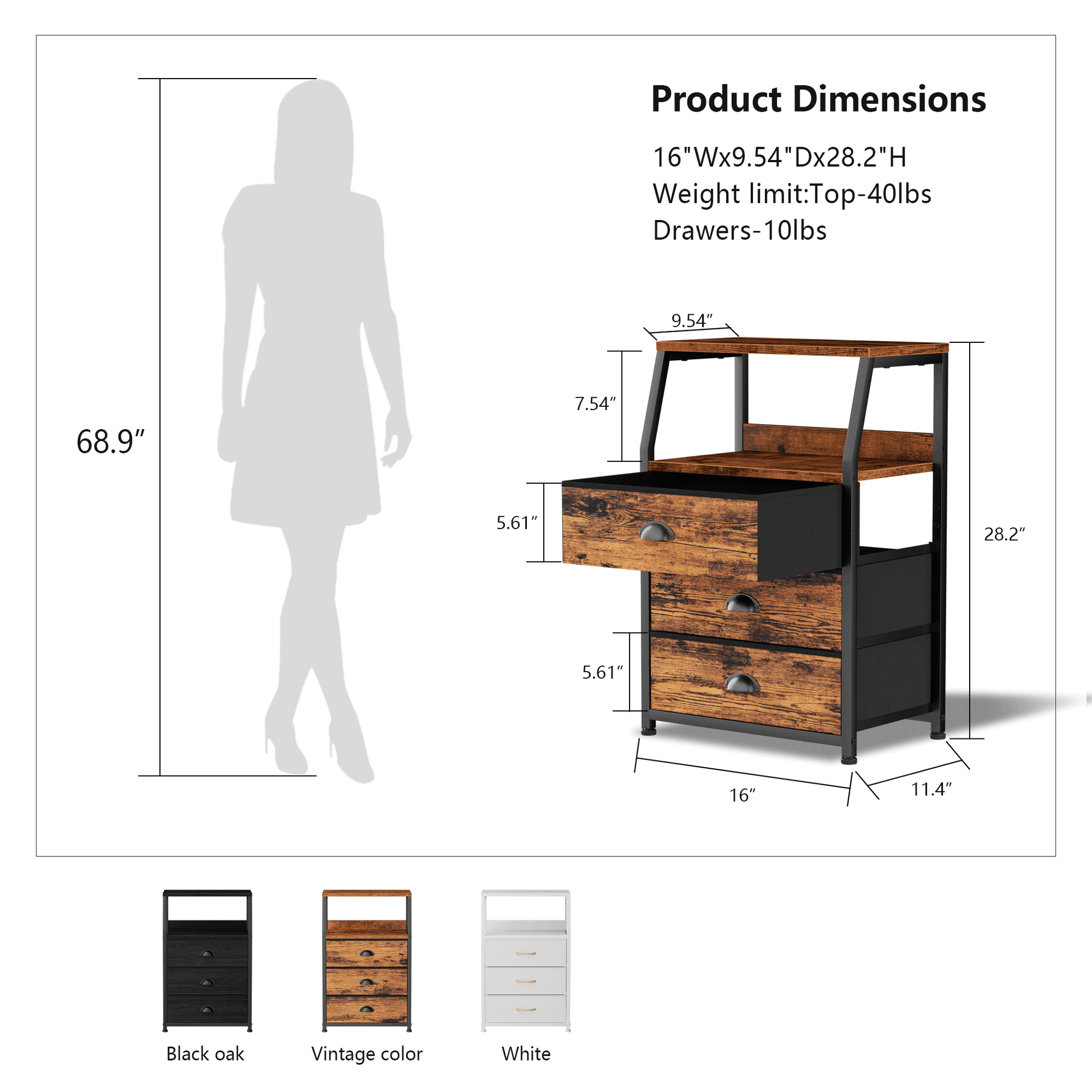 TYDIMOR Night Stand, Small Dresser 3 drawer storage organizer for Bedroom, Brown, Adults