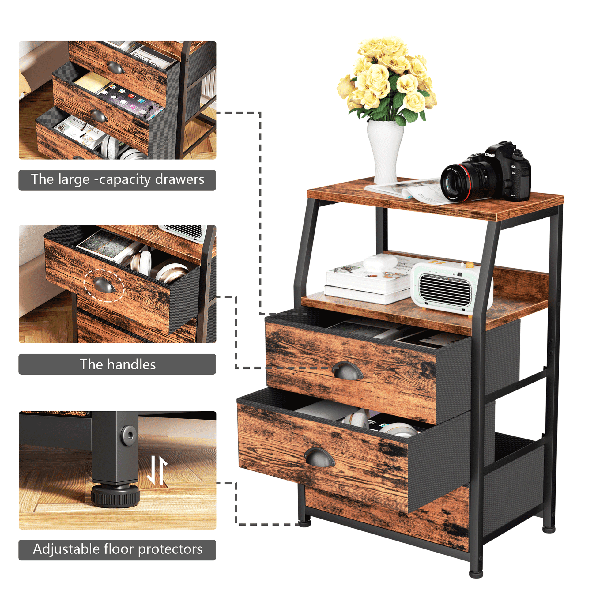 This versatile nightstand is perfect for bedrooms, dorms, living rooms, and offices. With three spacious fabric drawers for storage and a sturdy, water-resistant wooden top, it offers ample space for your essentials. The steel frame ensures long-lasting durability, while the adjustable feet and anti-toppling device provide added safety and protection for your floors. Assembly is a breeze, taking just 10 minutes, and 24/7 customer support is available if needed. Suitable for adults, this nightstand is a practical and stylish addition to any space.