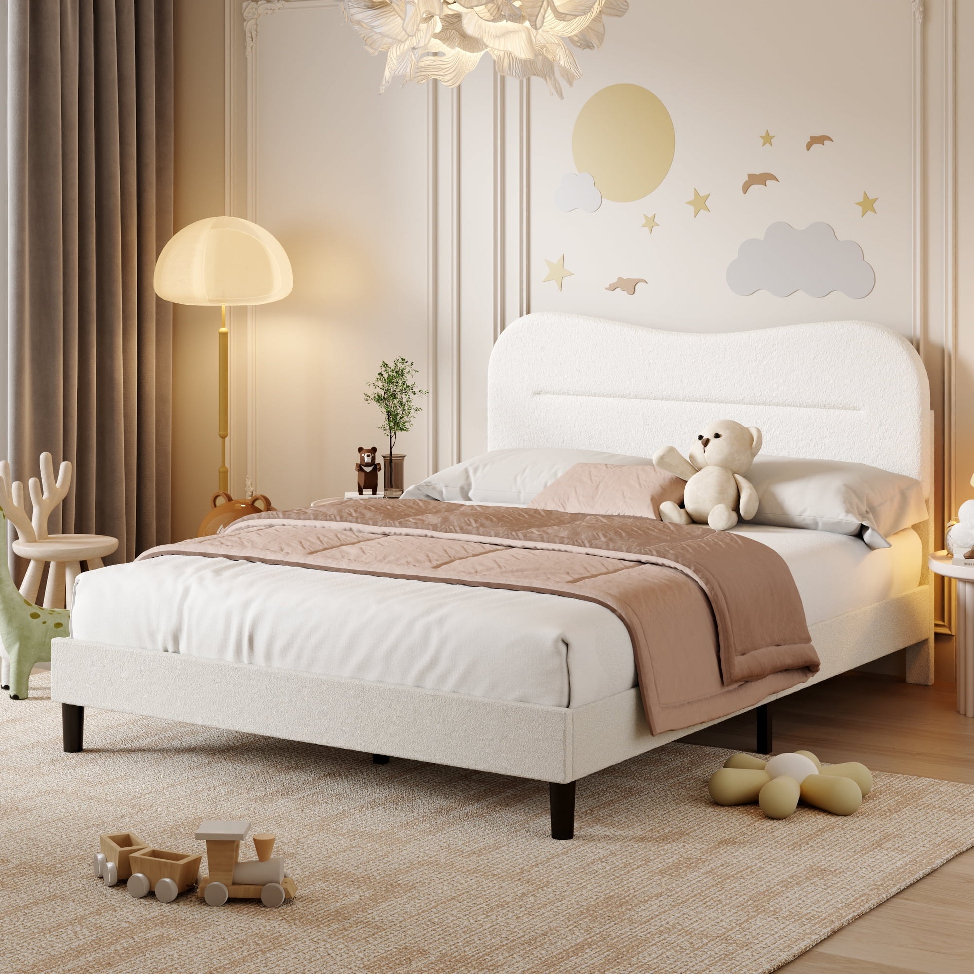 Tydimor Queen Bed Frame with Teddy Velvet Soft Curved Headboard, Platform Bed with Wooden Slats Support, Easy Assembly, Noise-Free, White