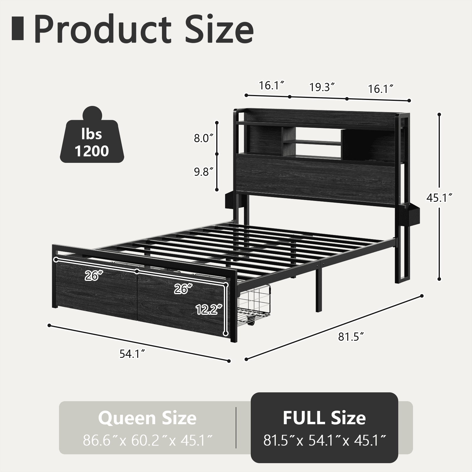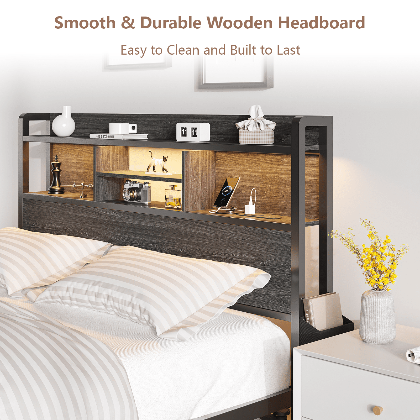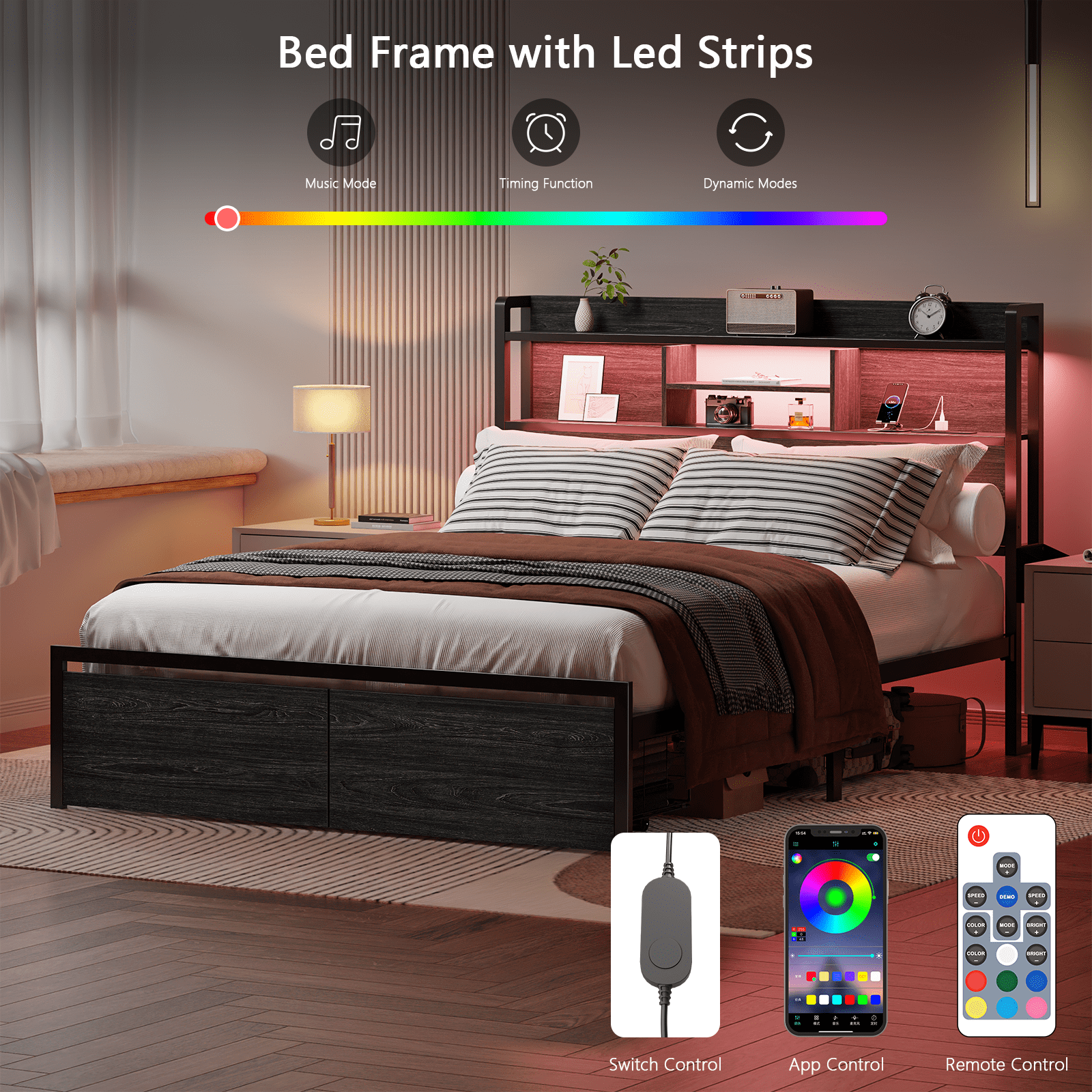 Tydimor Queen Size Bed Frames Bedroom Furniture Sets with Upholstered Storage Headboard & Outlets, LED Lights Standard Bed con Cajones, Niose Free