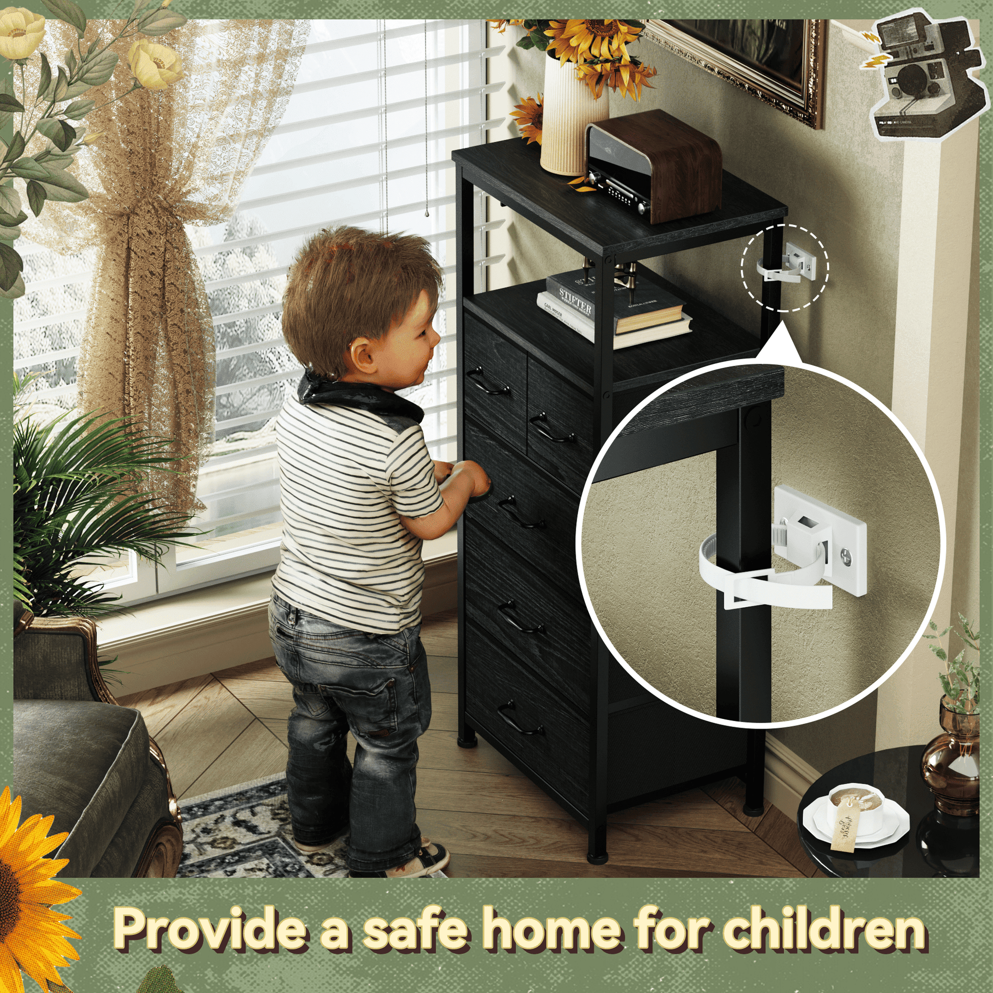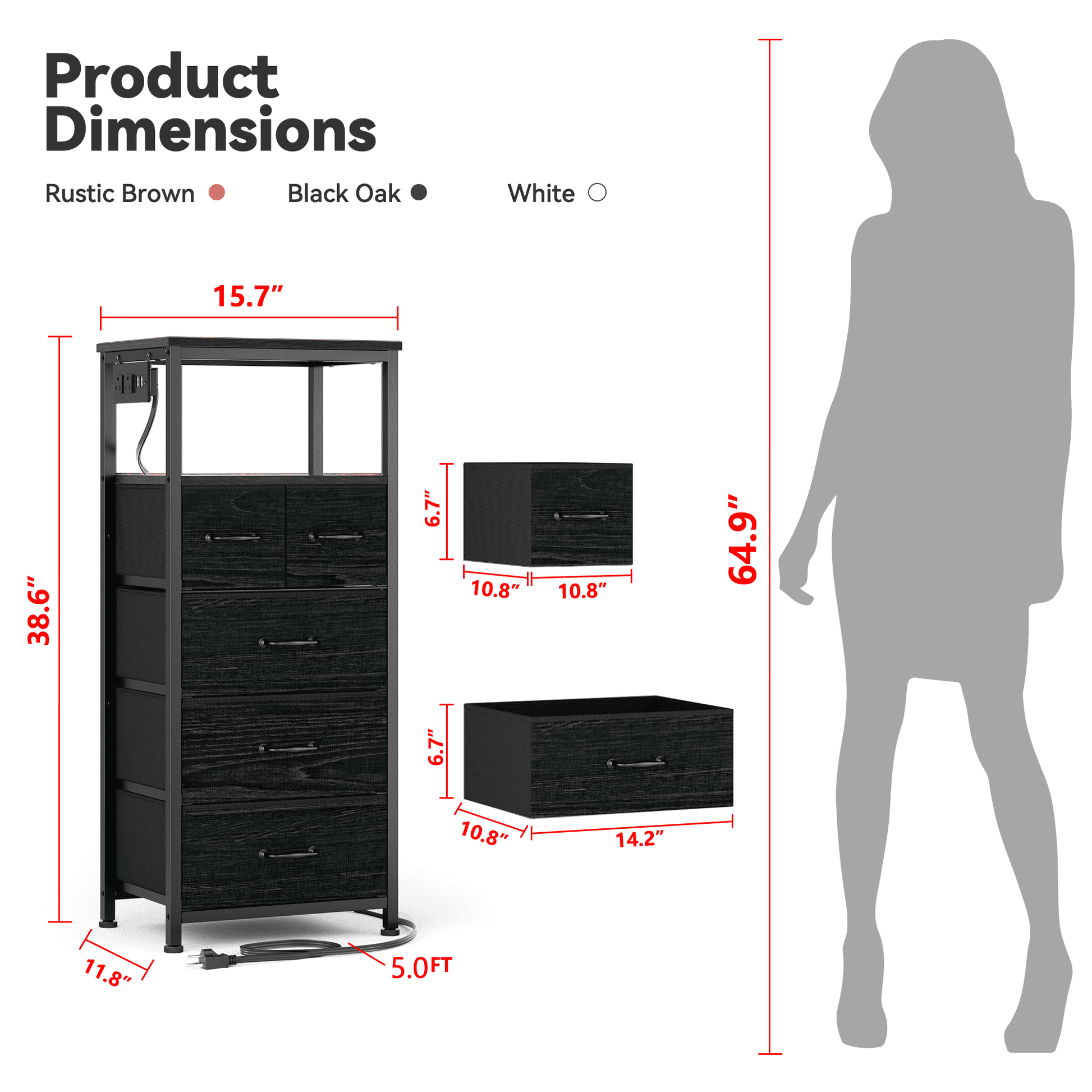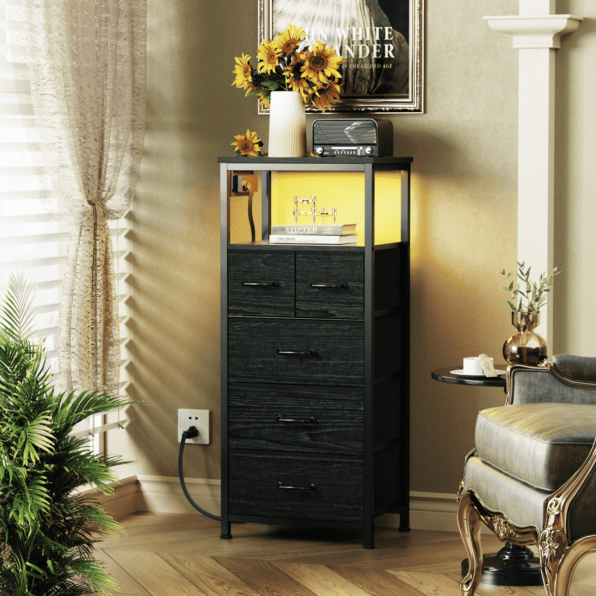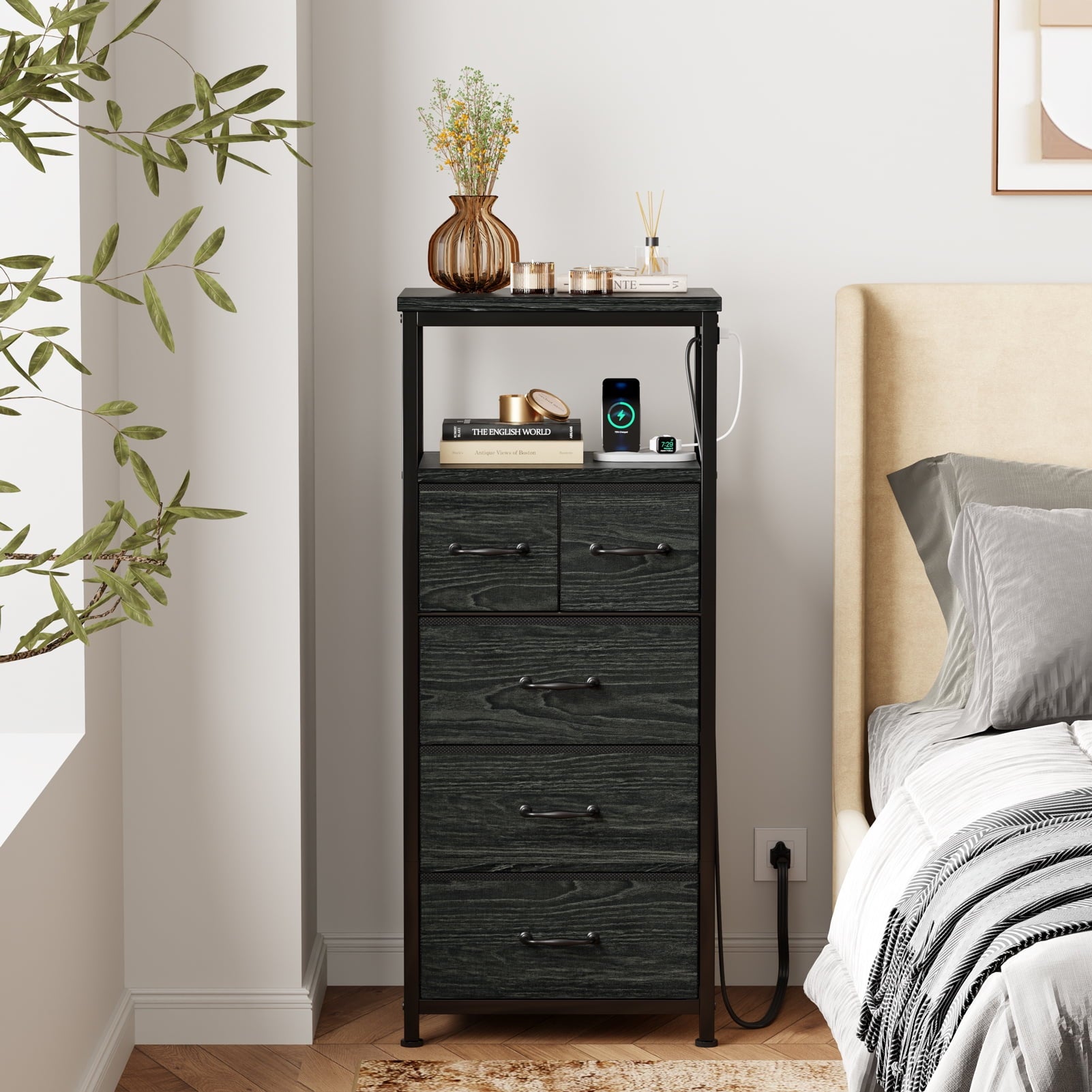 TYDIMOR Small Dresser for Bedroom, 5 Drawer with Charging Station, Black, Ideal for Adults