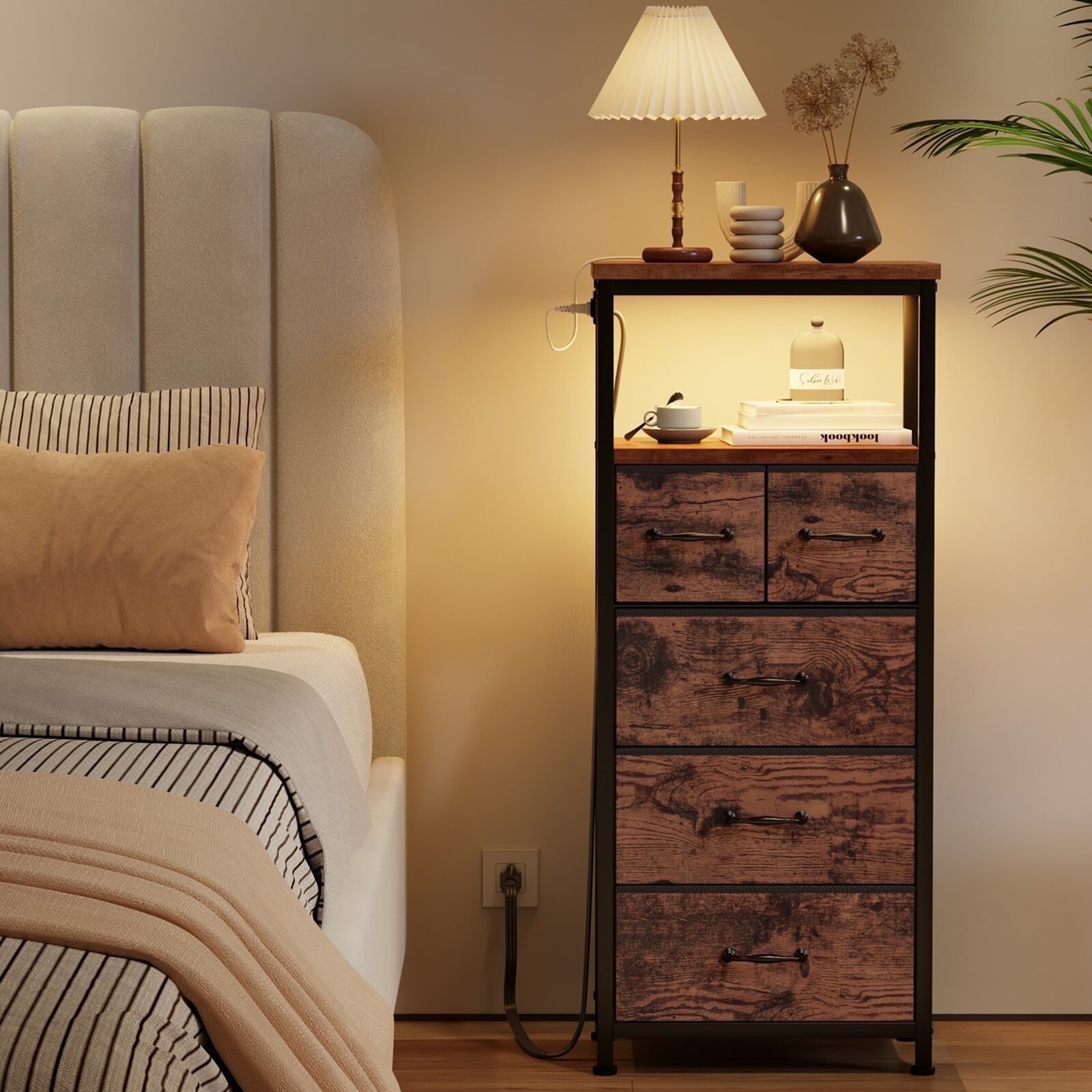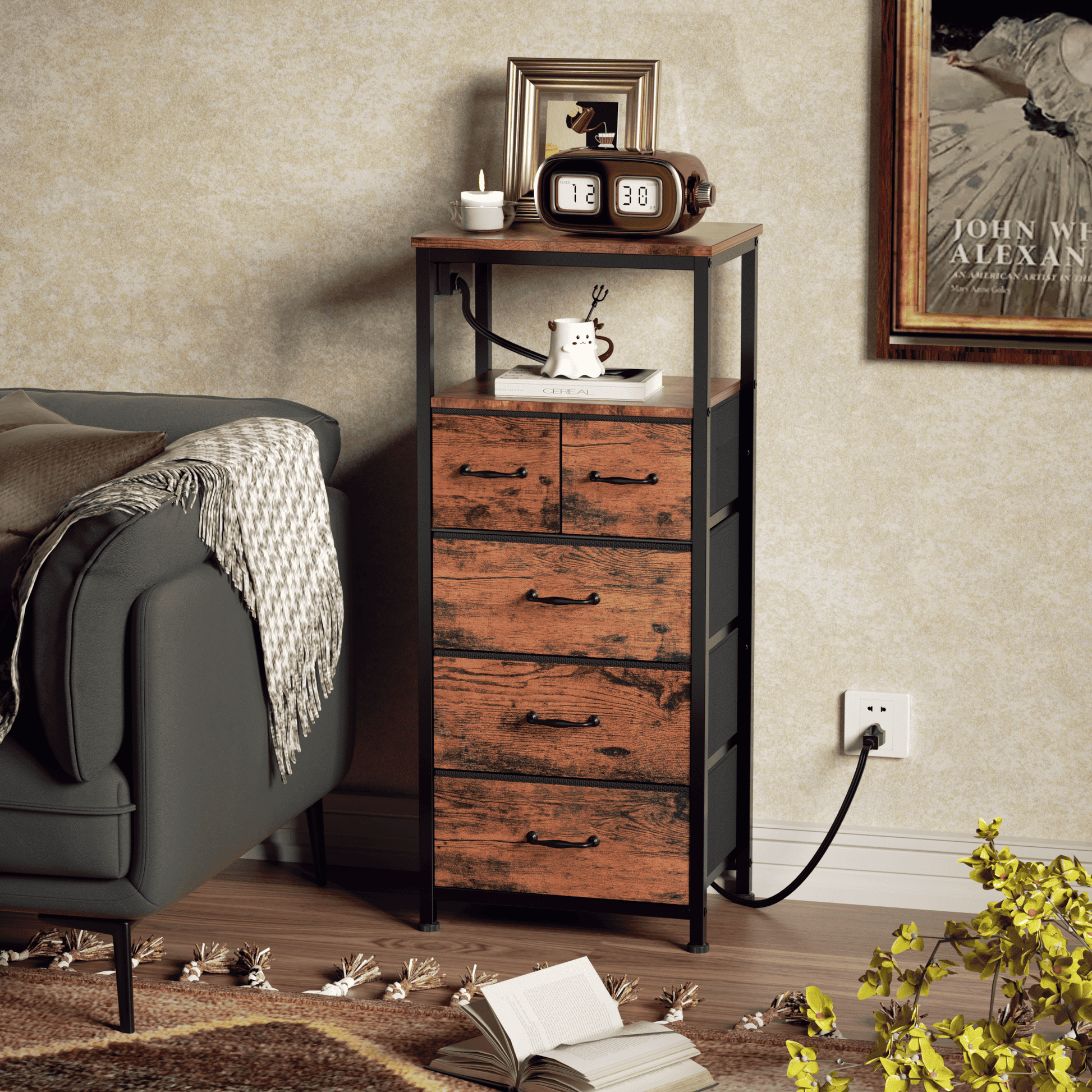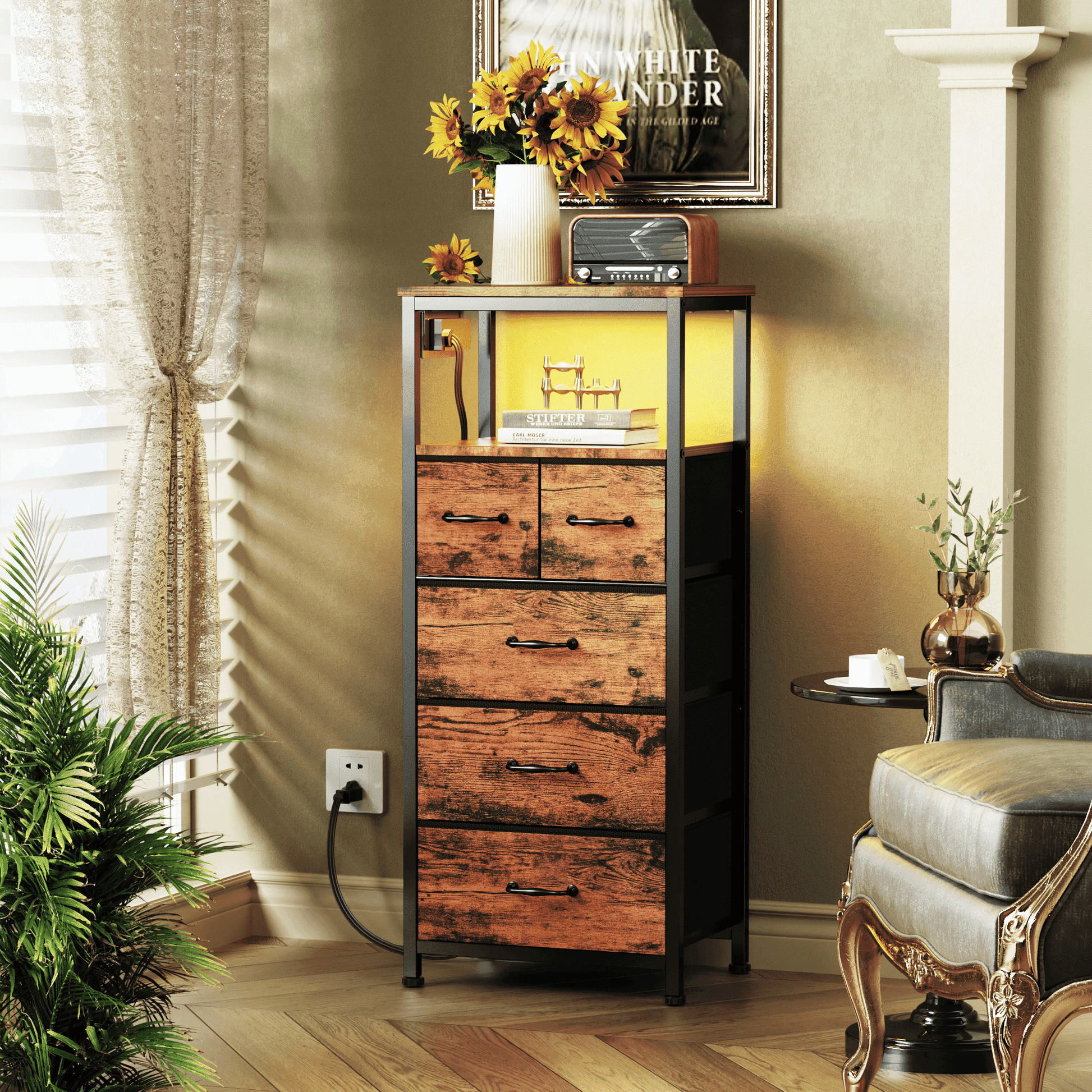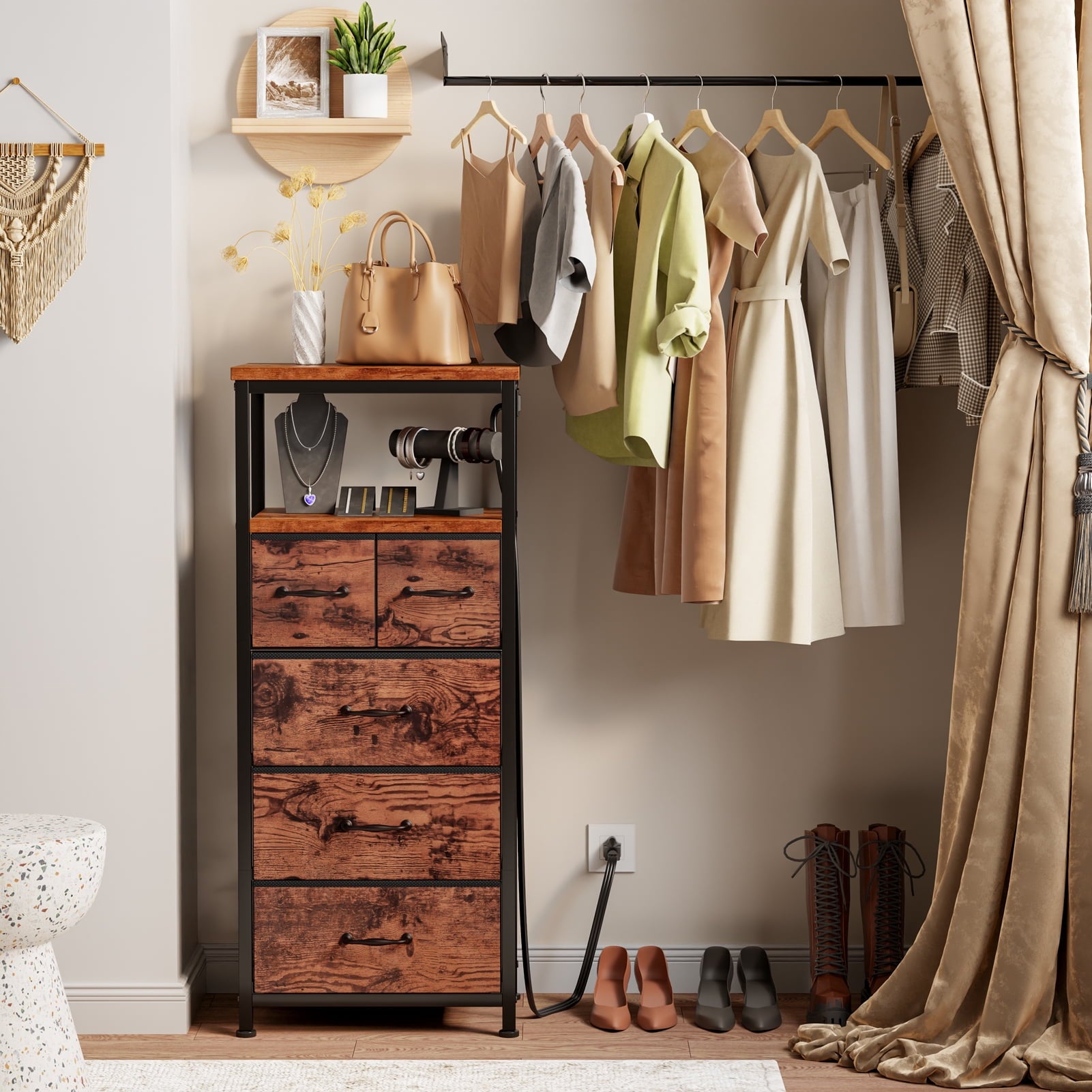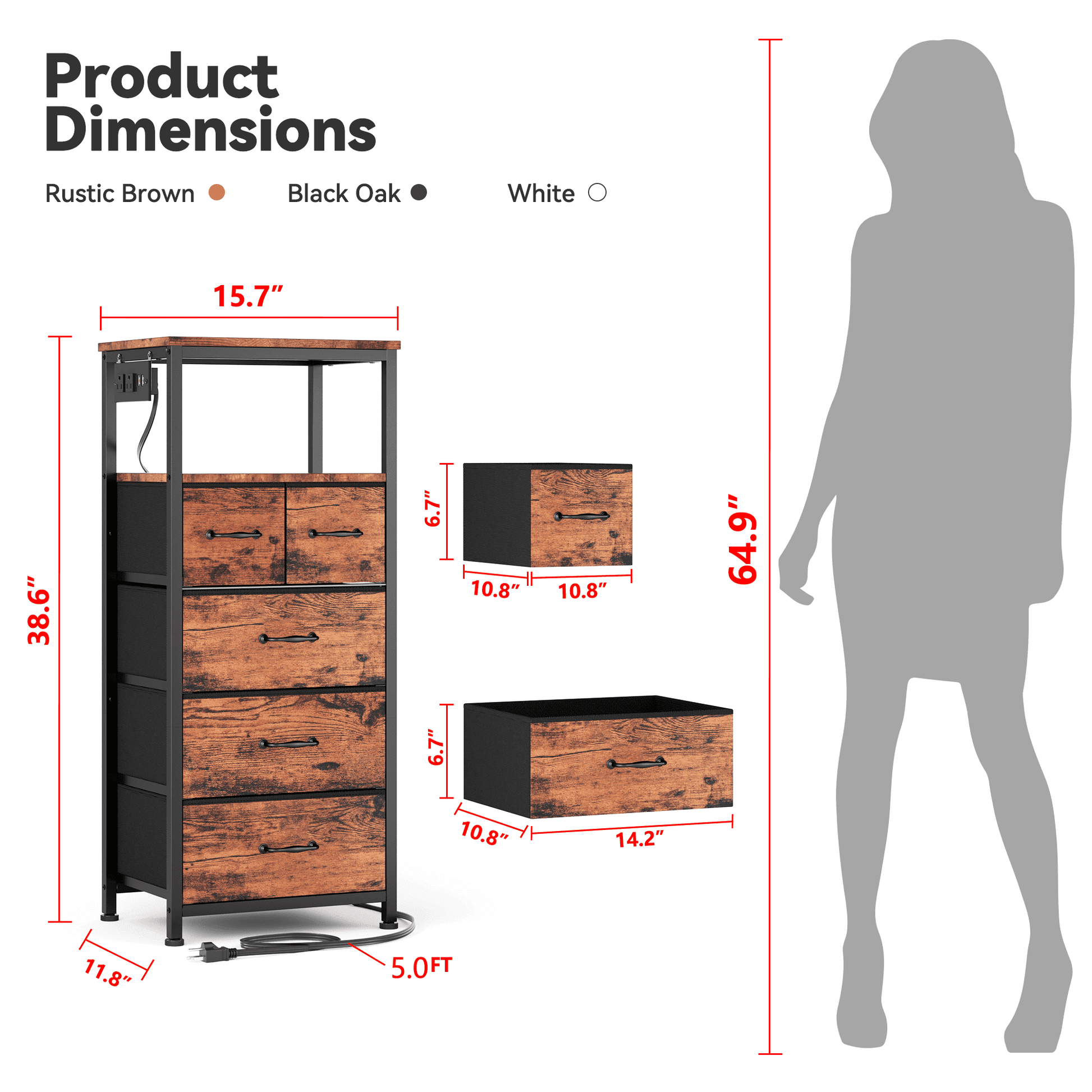 TYDIMOR Small Dresser for Bedroom, 5 Drawer with Charging Station, Brown, Ideal for Adults