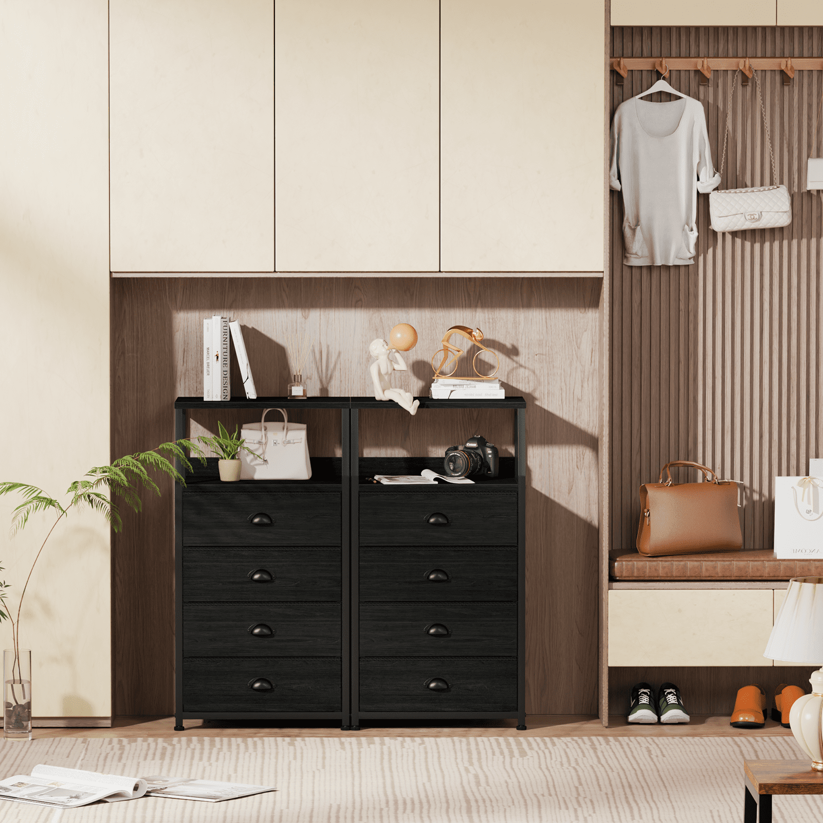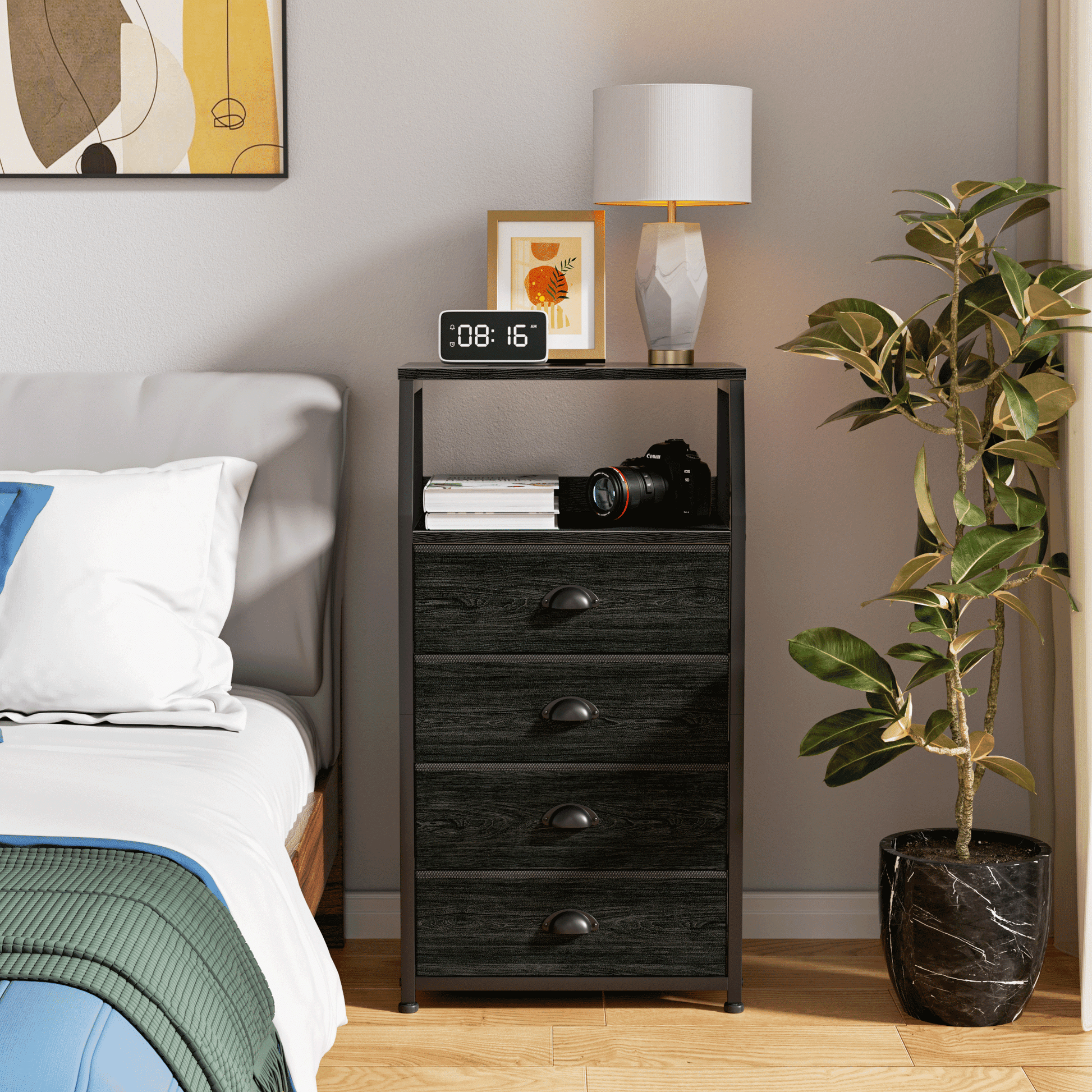 TYDIMOR Tall Nightstand,4 Drawer Black Dresser for Bedroom Storage,Side Table for All Ages