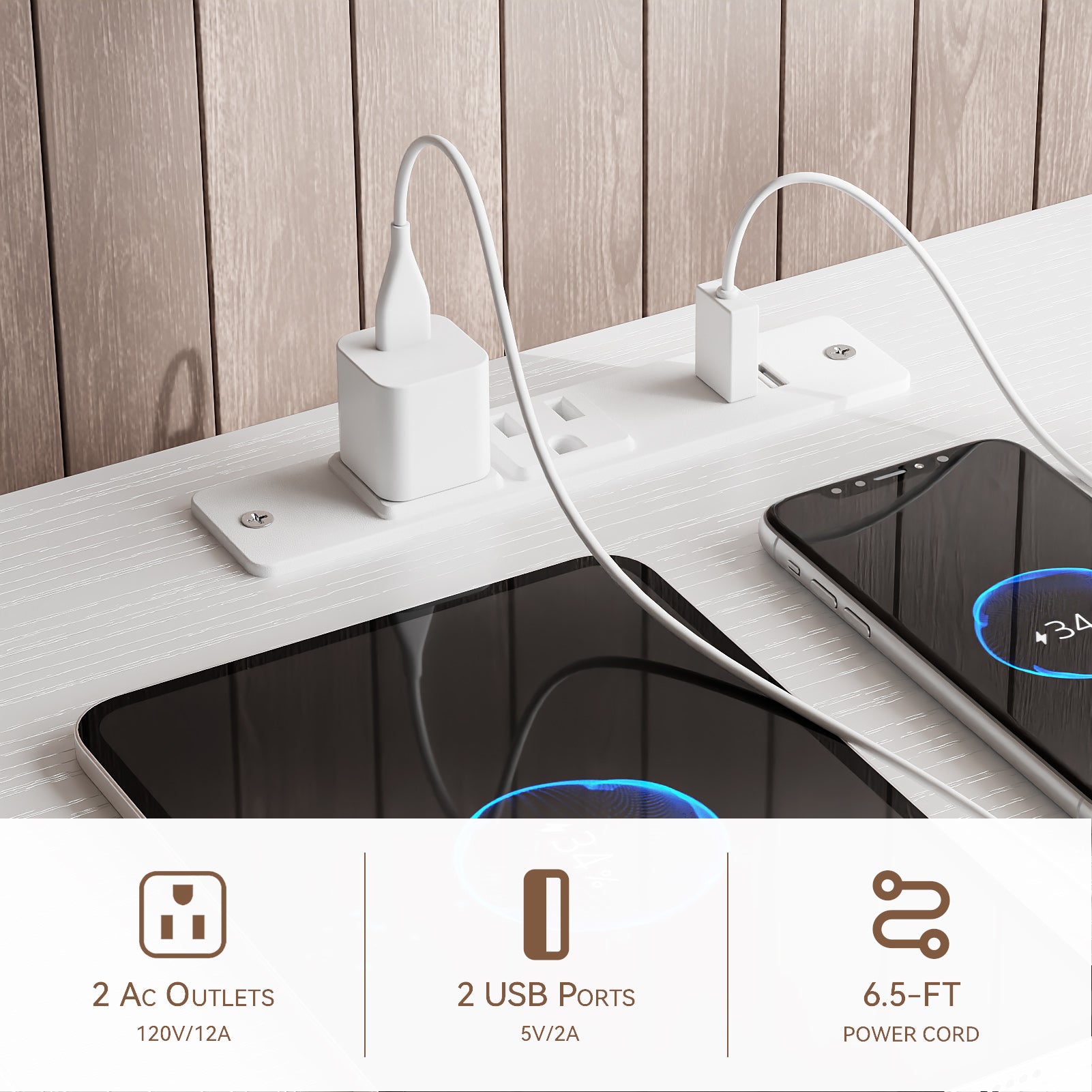 Integrated Charging: Equipped with 2 AC outlets and 2 USB ports to power and charge multiple devices, reducing cable clutter