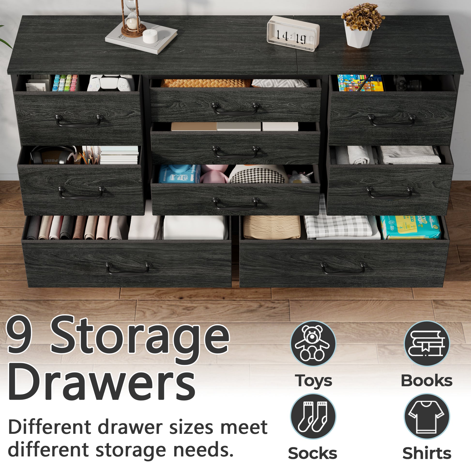 Ample Storage: 9 deep drawers organize remotes, game controllers, messy cables, and daily odds and ends—eliminating clutter for a neat living room