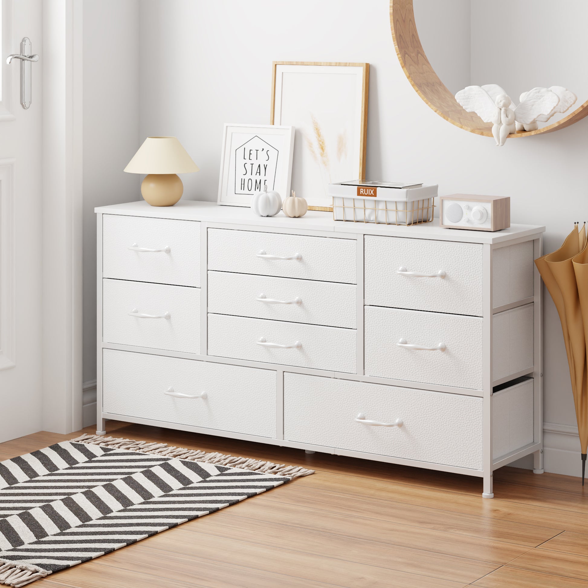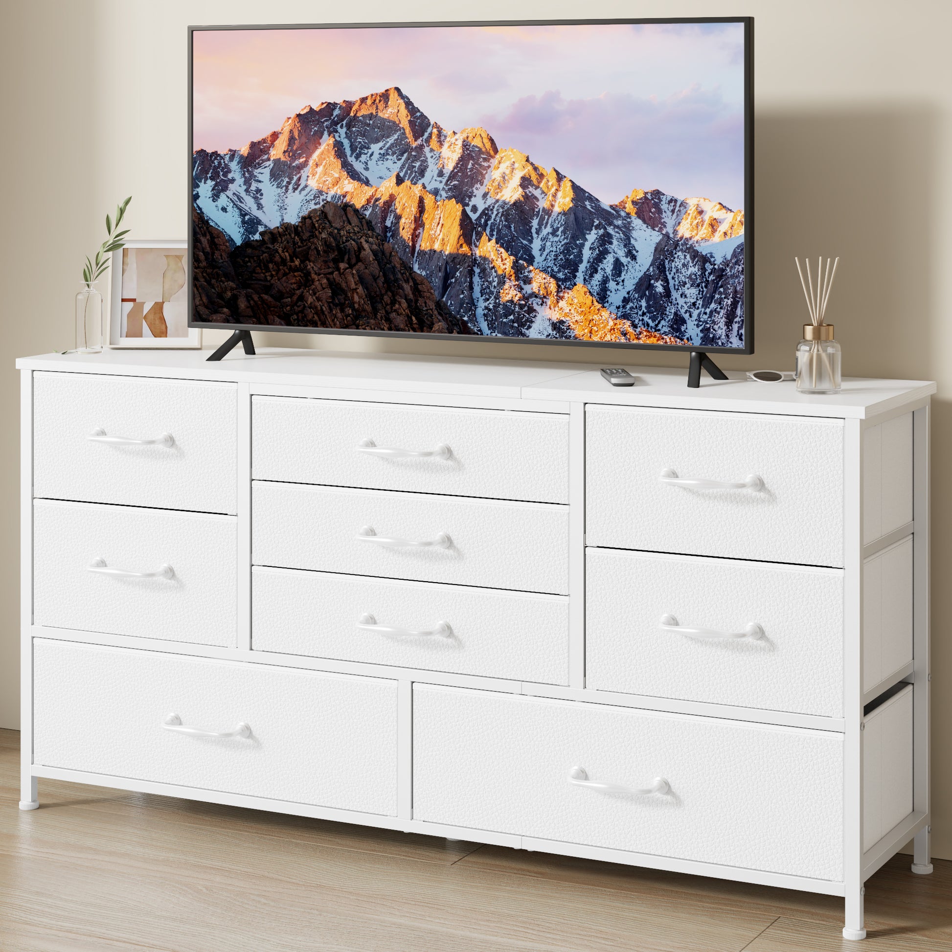 Tydimor TV Stand for TVs up to 55", Home Entertainment Center with 9 Drawers, Media Console for Living Room, White