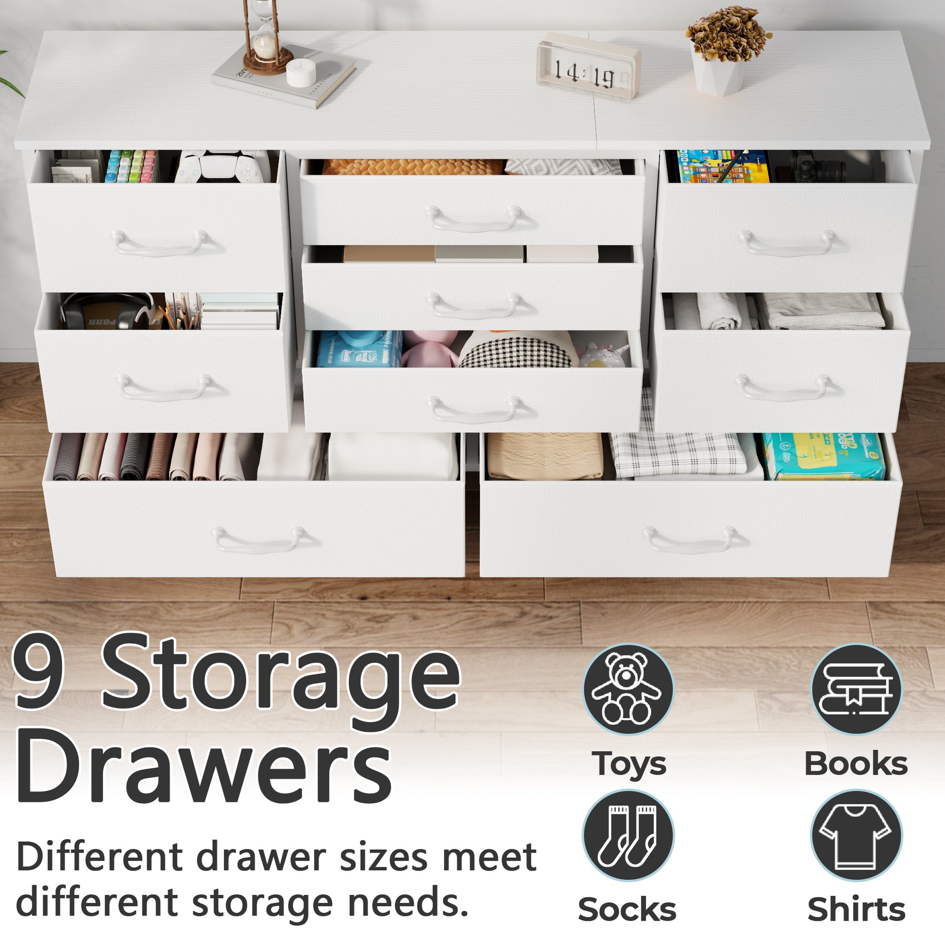 Ample Storage: 9 deep drawers organize remotes, game controllers, messy cables, and daily odds and ends—eliminating clutter for a neat living room