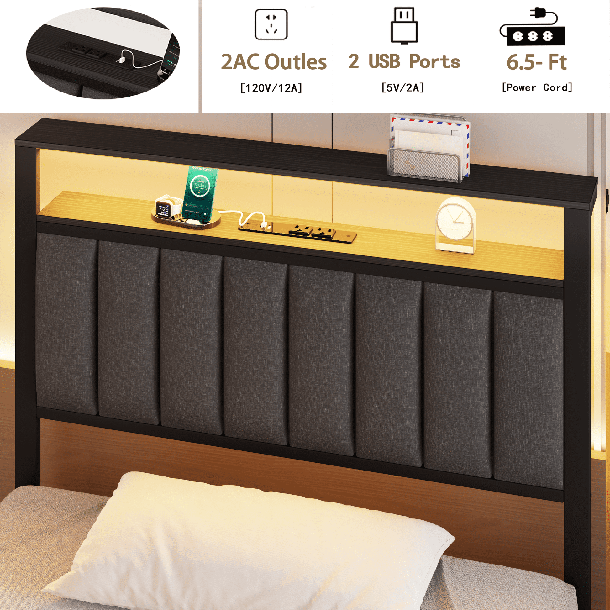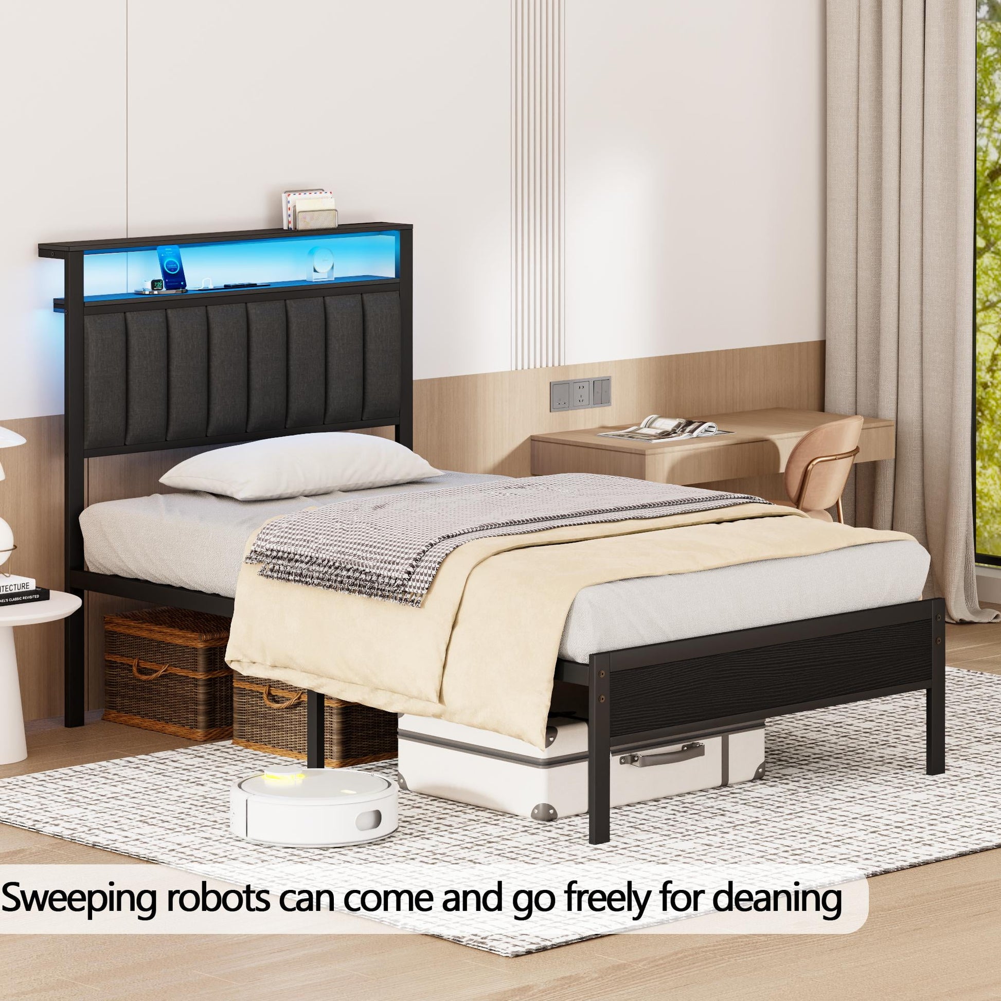 Tydimor Twin RGB LED Strip Platforrm Bed Frames with Headboard Metal, Storage Shelves & Underbed, Niose Free, No Box Spring Needed